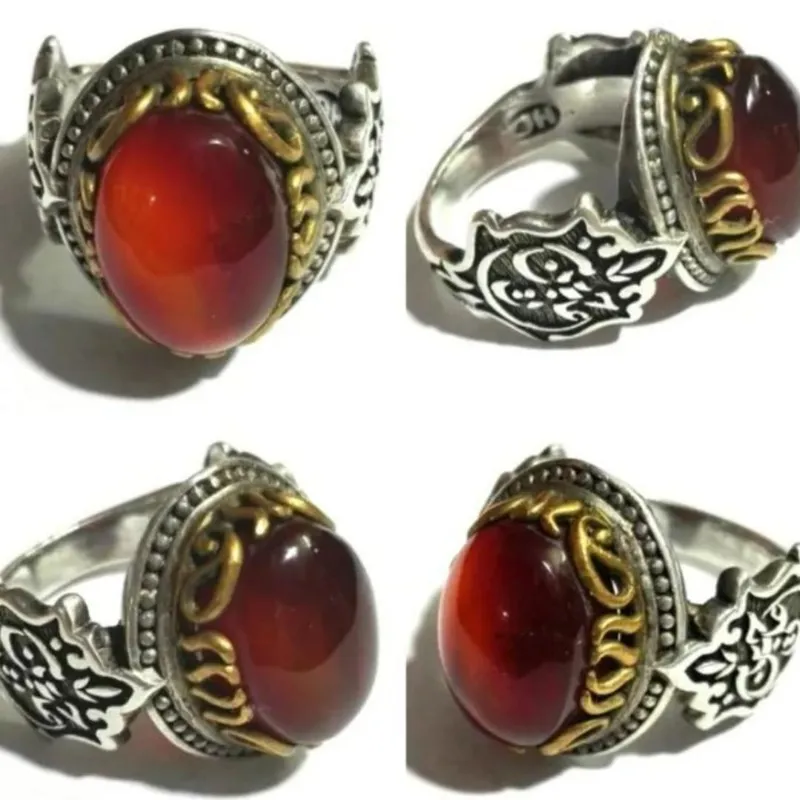 انگشتر شاهی عقیق یمنی کمیاب باسنگی چشم گیر وابدار نقره 925 سایز 63