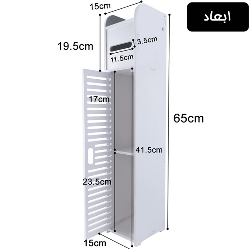 این شلف تولید شده از ورق پی وی سی مرغوب و باکیفیت می باشد که مطابق با سایر محصولات خانواده خود در برابر آب و رطوبت کاملاً مقاوم است ، به طوری که حتی در صورت نیاز می توانید آن را بشویید . کالا از نوع ایستاده با ارتفاع 65 سانتی متر می باشد که به صورت باریک طراحی شده تا بتوانید در کمترین فضای ممکن به سادگی آن را قرار داده و استفاده نمایید . فضای کلی استند لوازم سرویس بهداشتی به سه قسمت تقسیم شده . سطح رویین شلف که فضای باز محسوب می شود برای جای دادن وسایل مختلف کاربرد دارد ، در زیر این سطح محفظه ای طراحی شده که مناسب برای قرار دادن رول دستمال کاغذی با ابعاد استاندارد می باشد ، محفظه به صورت کامل پوشیده است و درب آن از قسمت بالا باز می شود ، دسترسی به دستمال نیز ، از شیار تعبیه شده در قسمت جلو مقدور خواهد بود ، بنابراین بدون اینکه نیازی به تماس مستقیم دست با رول دستمال باشد به میزان دلخواه می توانید از آن بردارید . در زیر جادستمال رولی ، فضایی بزرگتر وجود دارد که با استفاده از یک درب به صورت کامل پوشش داده می شود . این بخش ، دو طبقه و مناسب برای جای دادن لوازم و وسایل بهداشتی مختلف است با ذکر این خصوصیت که در صورت نیاز به فضای بیشتر می توانید ورق میانی را برداشته تا به صورت یک طبقه با ارتفاع بیشتر قابل بهره برداری شود . از شلف ایستاده سفید در محیط های مختلف متناسب با نیاز به ویژه داخل سرویس بهداشتی می توانید استفاده کنید .