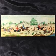 تابلوی مینیاتور ایرانی با طرح سنتی شکار و سوارکاری، نقاشی شده با دست روی صفحه ای از جنس پلاستیک فشرده