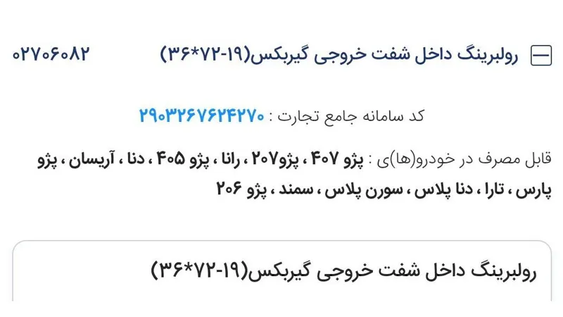 رولبرینگ داخل شفت خروجی گیربکس (19-72*36) پژو شرکتی