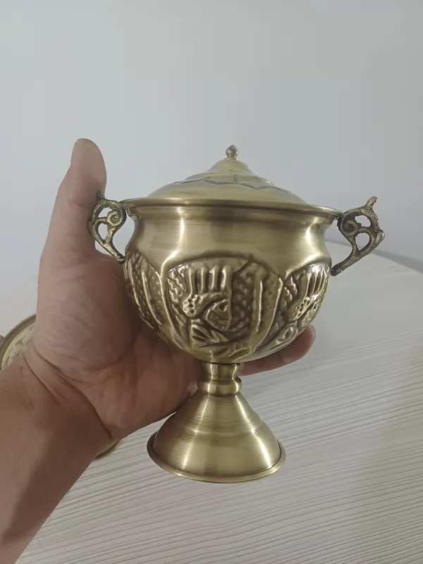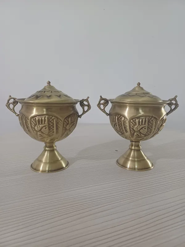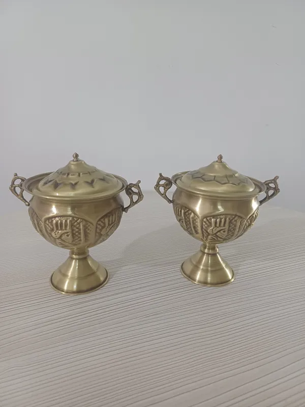 یک جفت قندان برنجی قلم نانو شده رنگ ثابت