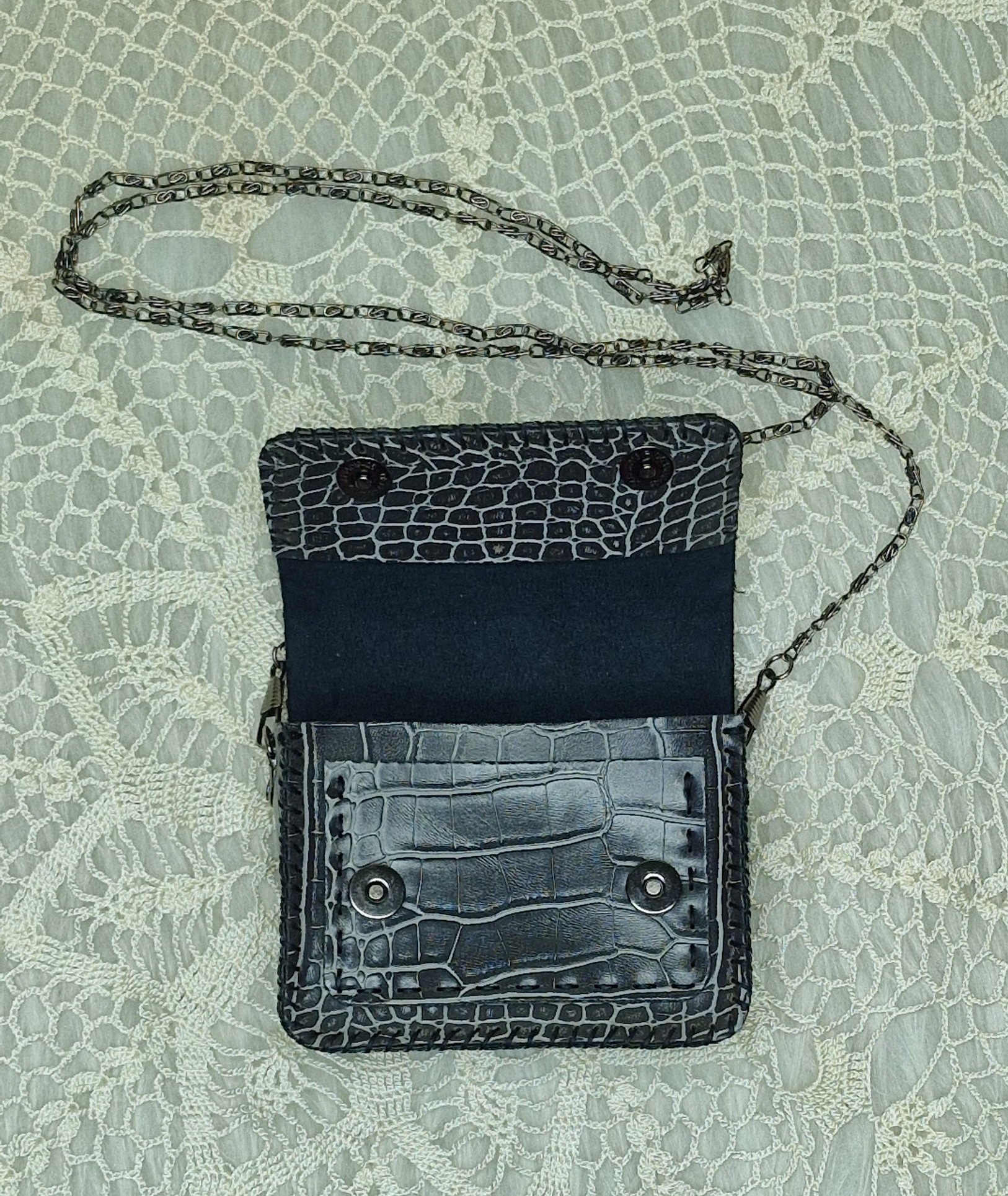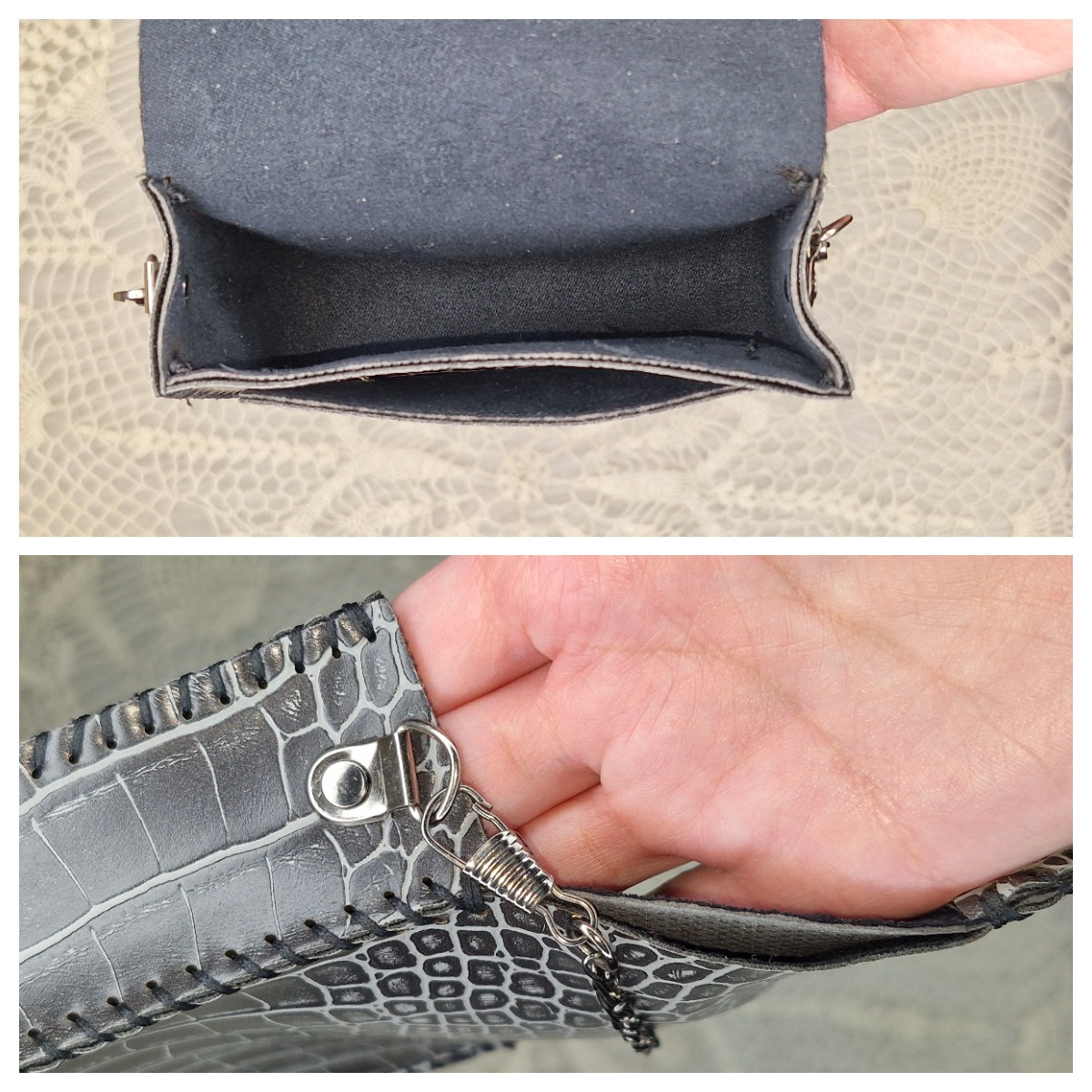 رنگ قهوه ای سوخته طرح پوست کروکودیل / دکمه ها آهنربایی بسیار قوی / دارای یک محفظه ی اصلی و یک جیب کوچک در زیر در کیف / بند : زنجیر بسیار محکم با رنگ 100% ثابت .
