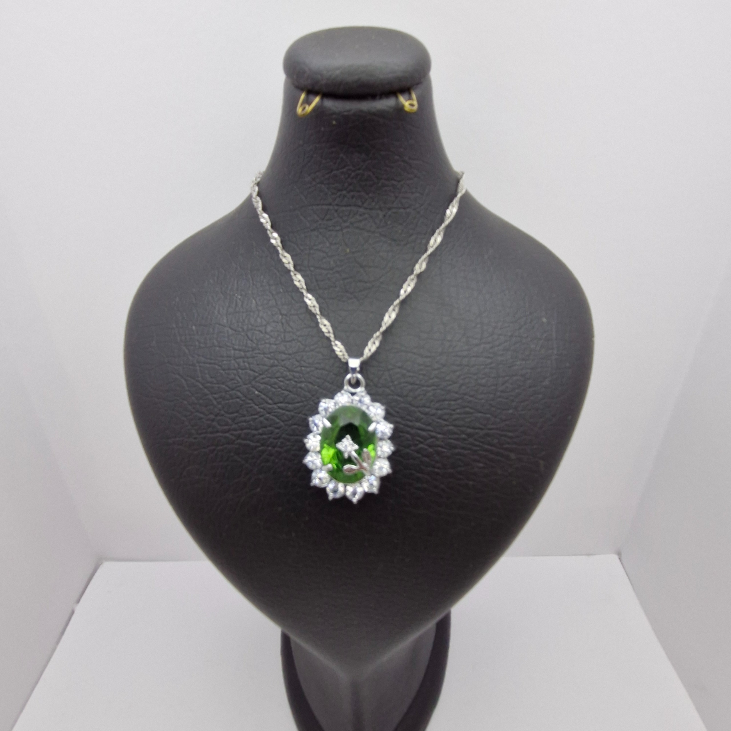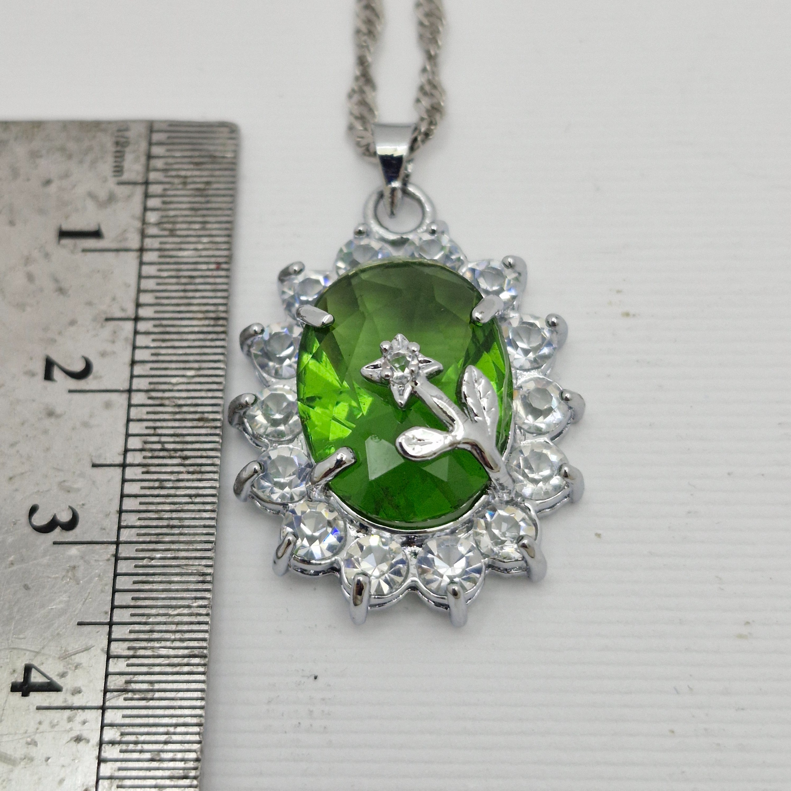 آویز مس آبکاری تیتانیوم با نگین کریستال سبز دور نگین شیشه