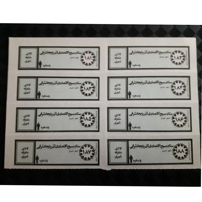 ورق کامل کوپن قدیمی کالای متفرقه شهری یکنفره تبریز