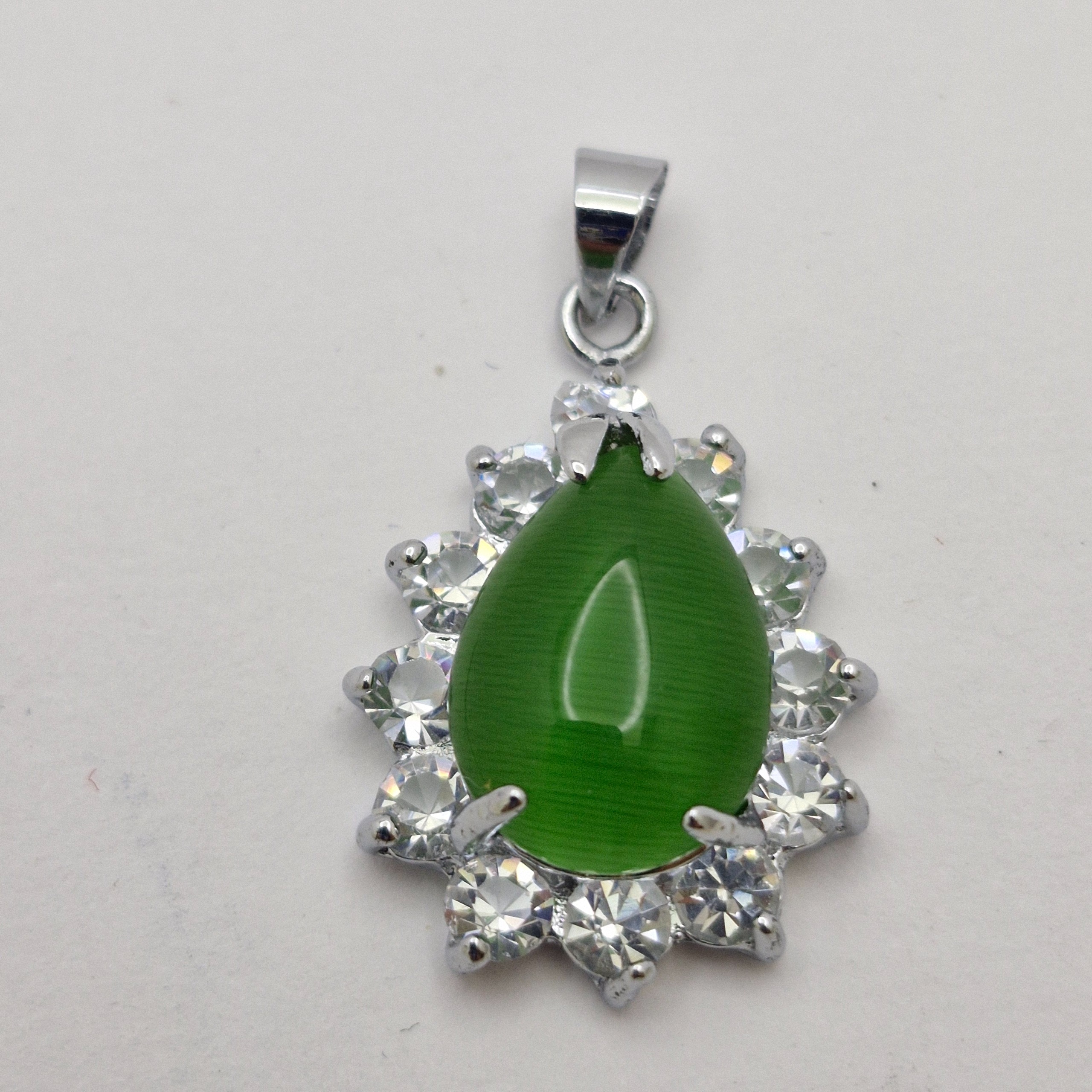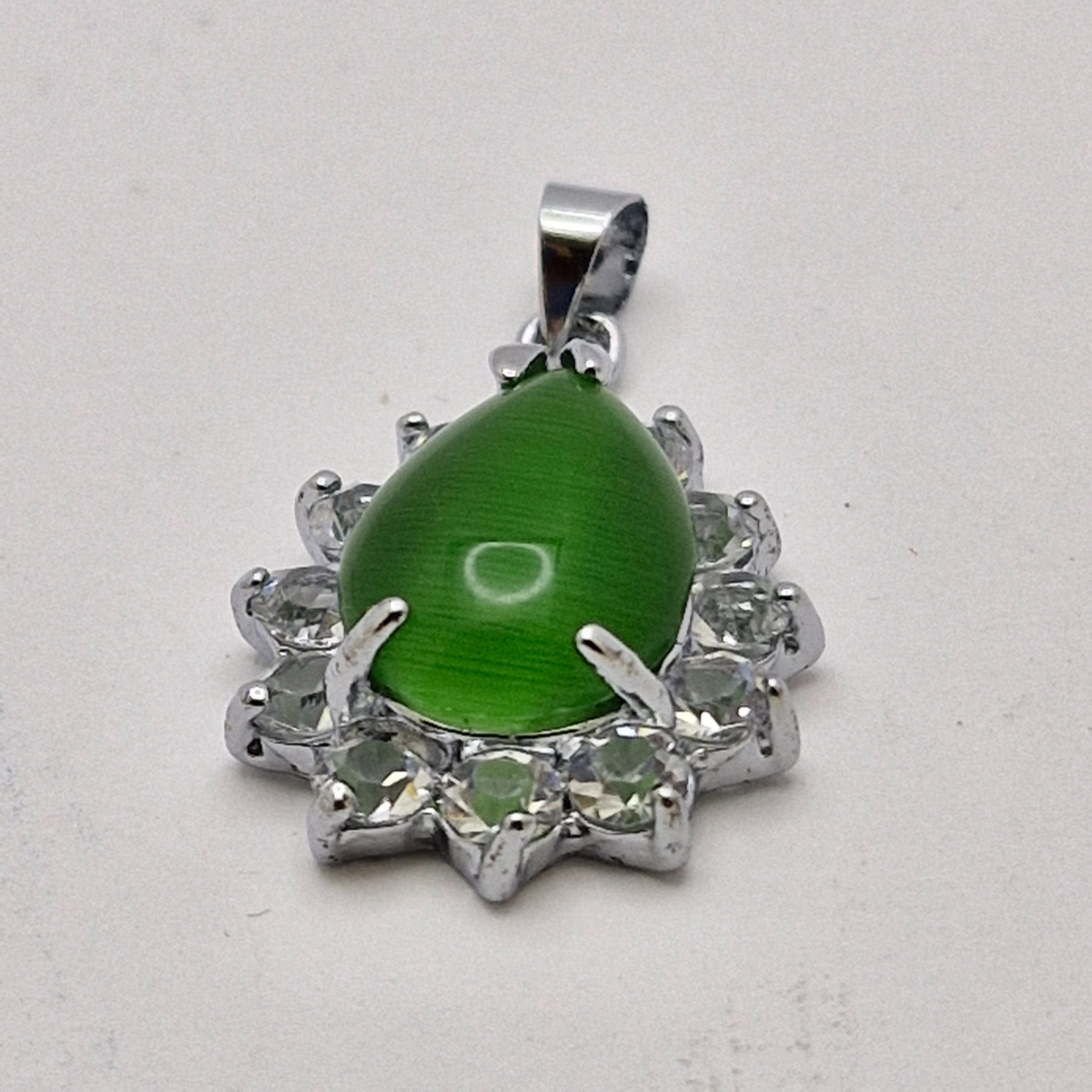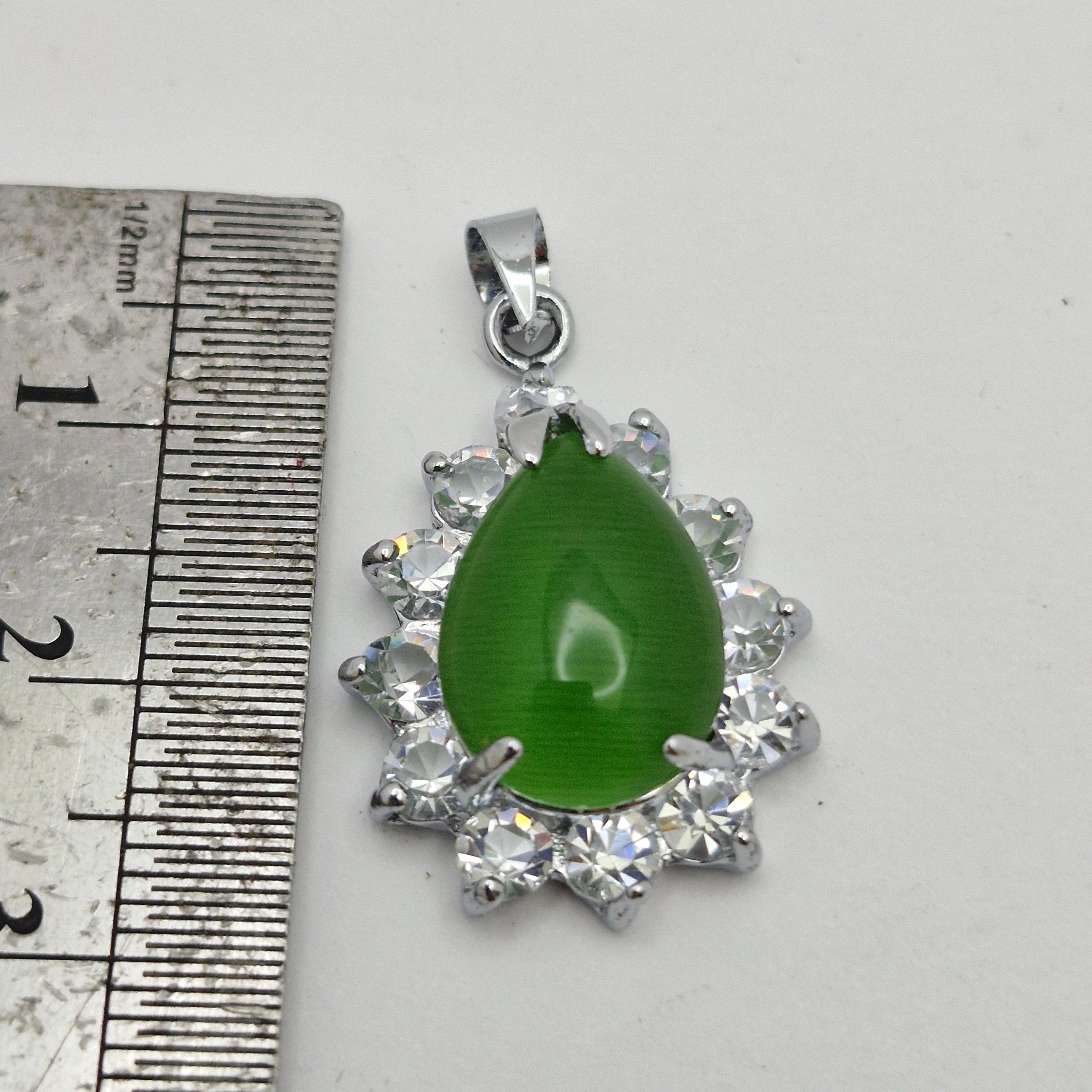 آویز مس آبکاری تیتانیوم با کریستال چشم گربه ای سبز