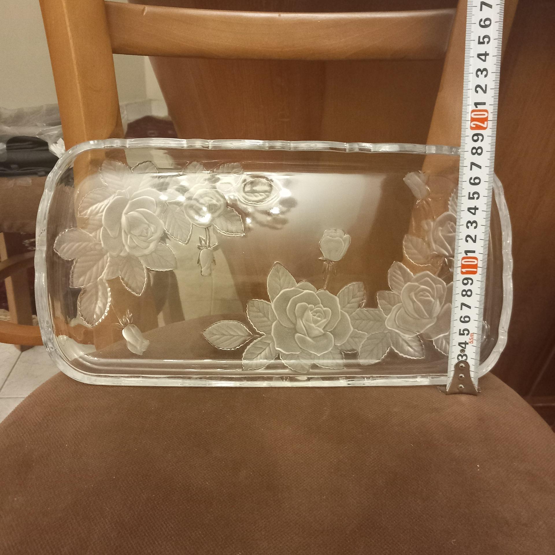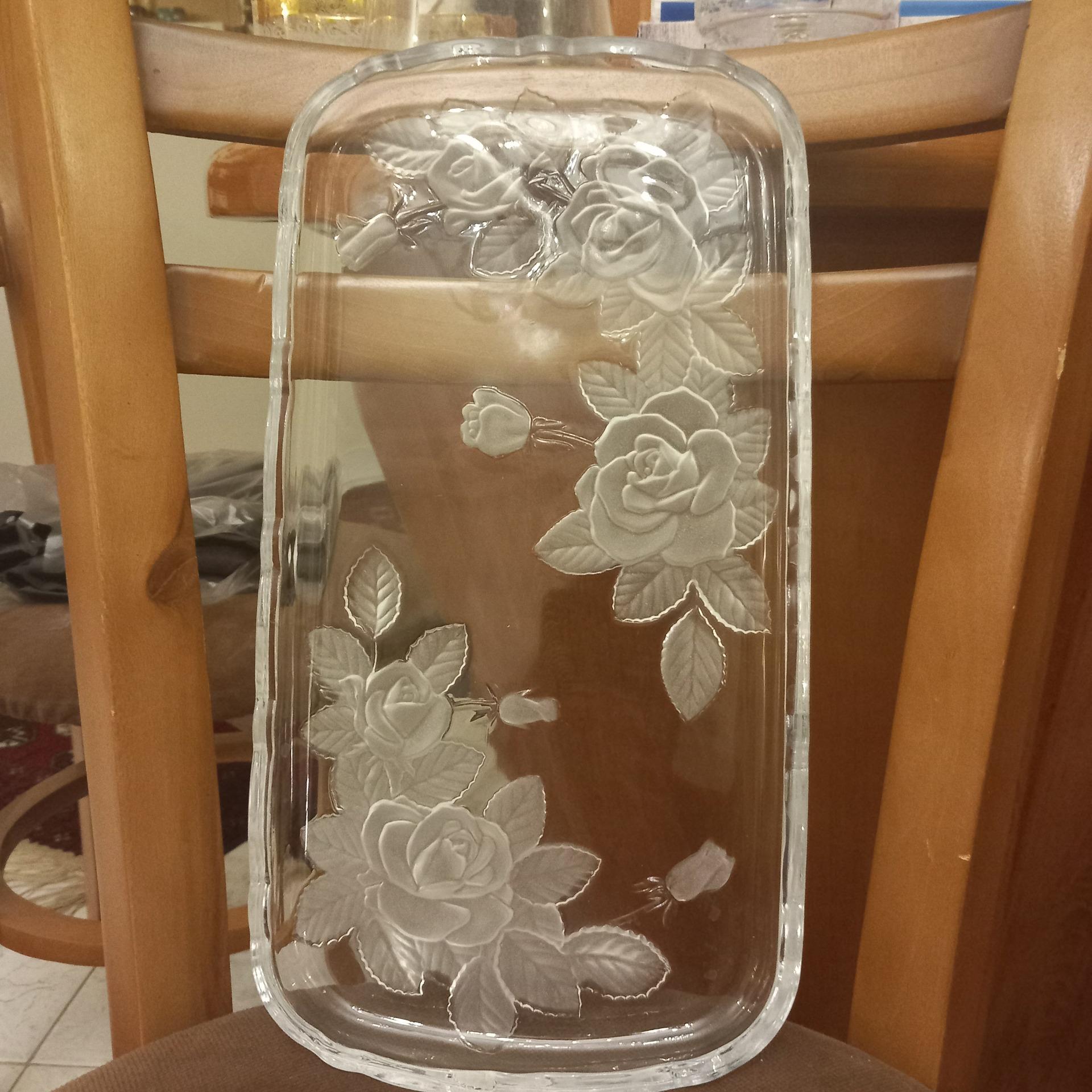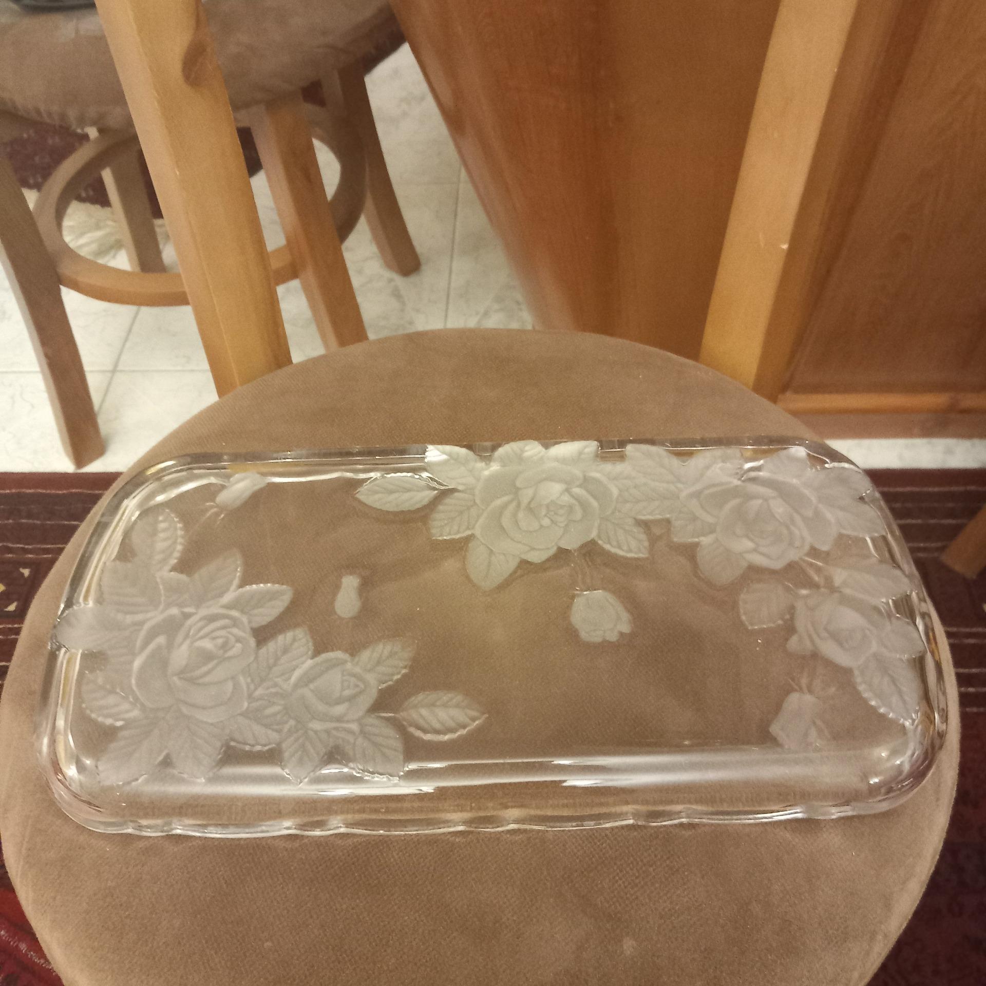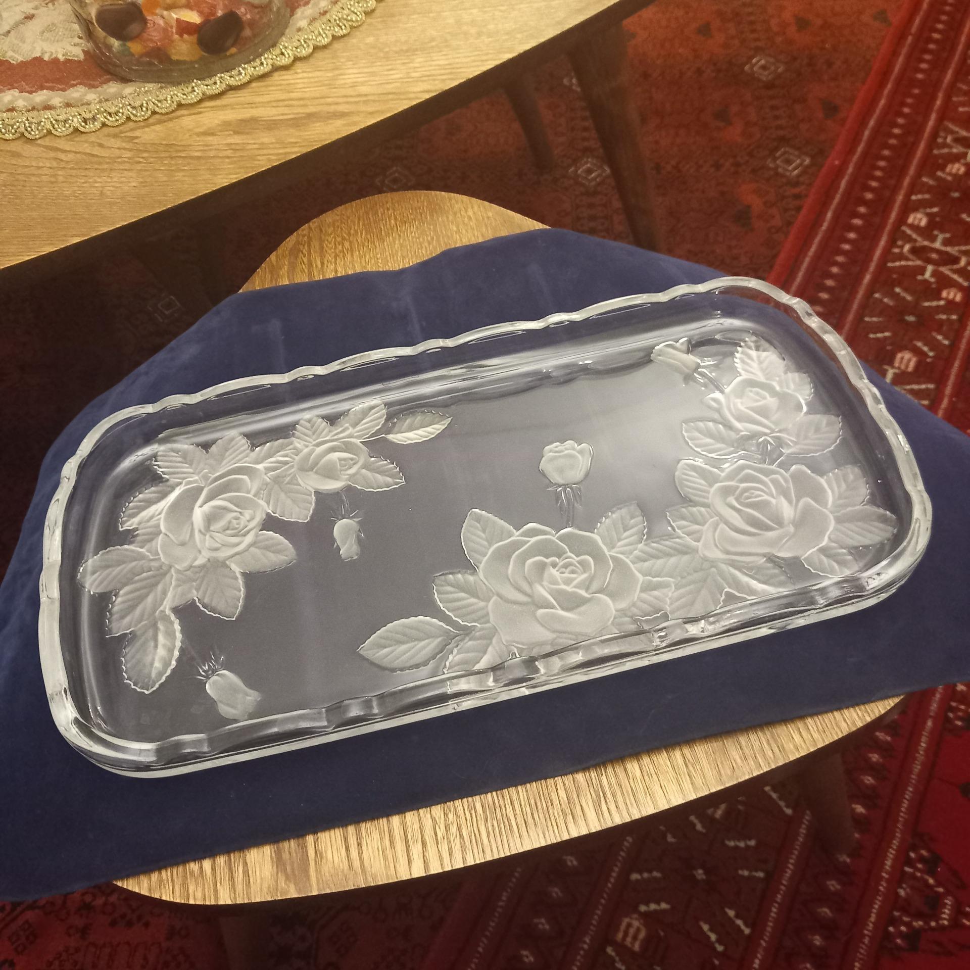کریستال قدیمی/ گل برجسته/ شیرینی خوری بسیار زیبا/ ابعاد: طول: 36سانت عرض: 20سانت/