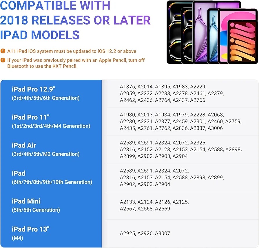 مداد KXT Tilt & Palm Rejection بهترین ابزار برای طراحی و ترسیم روی صفحه نمایش دیجیتال است. با قابلیت شیب، میتوانید خطوط مختلف با زوایای مختلف رسم کنید. با قابلیت Palm Rejection، میتوانید از این قلم به عنوان یک مداد واقعی در آیپد اپل خود استفاده کنید. لطفاً کد دستگاه خود را بررسی کنید و ببینید که آیا این قلم کار میکند یا خیر. این قلم برای آیپد نسخه 2018 تا 2022 طراحی شده است.