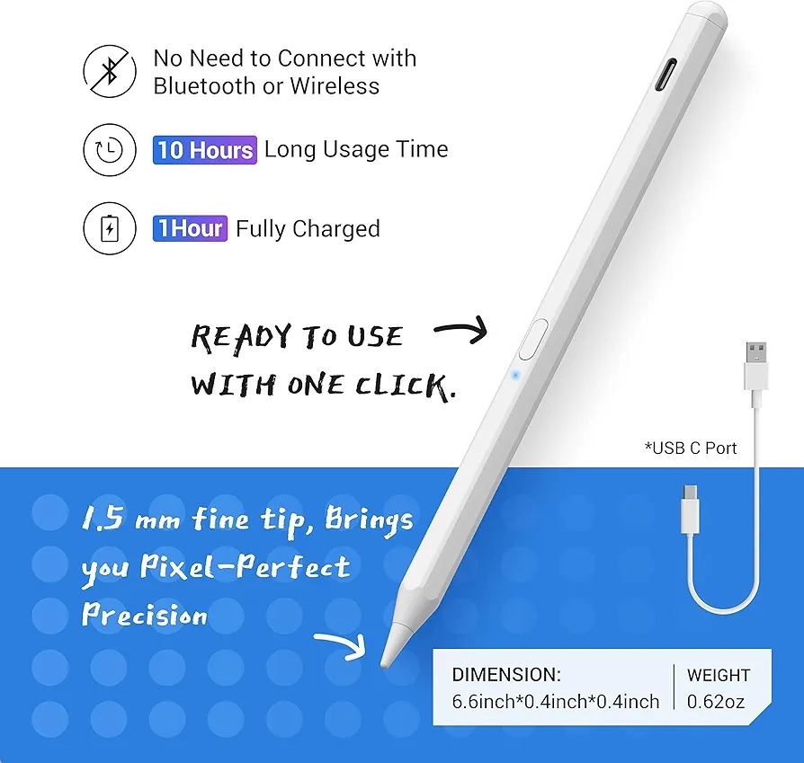 [کیفیت عالی] طراحی یکپارچه با روکش مات، بهترین حس در دست گرفتن را ارائه میدهد. استفاده از آن فوقالعاده آسان است و وقتی ایدهای به ذهنتان میرسد، آماده است. نیازی به اتصال از طریق بلوتوث یا بیسیم نیست. به صورت مغناطیسی به آیپد متصل میشود.