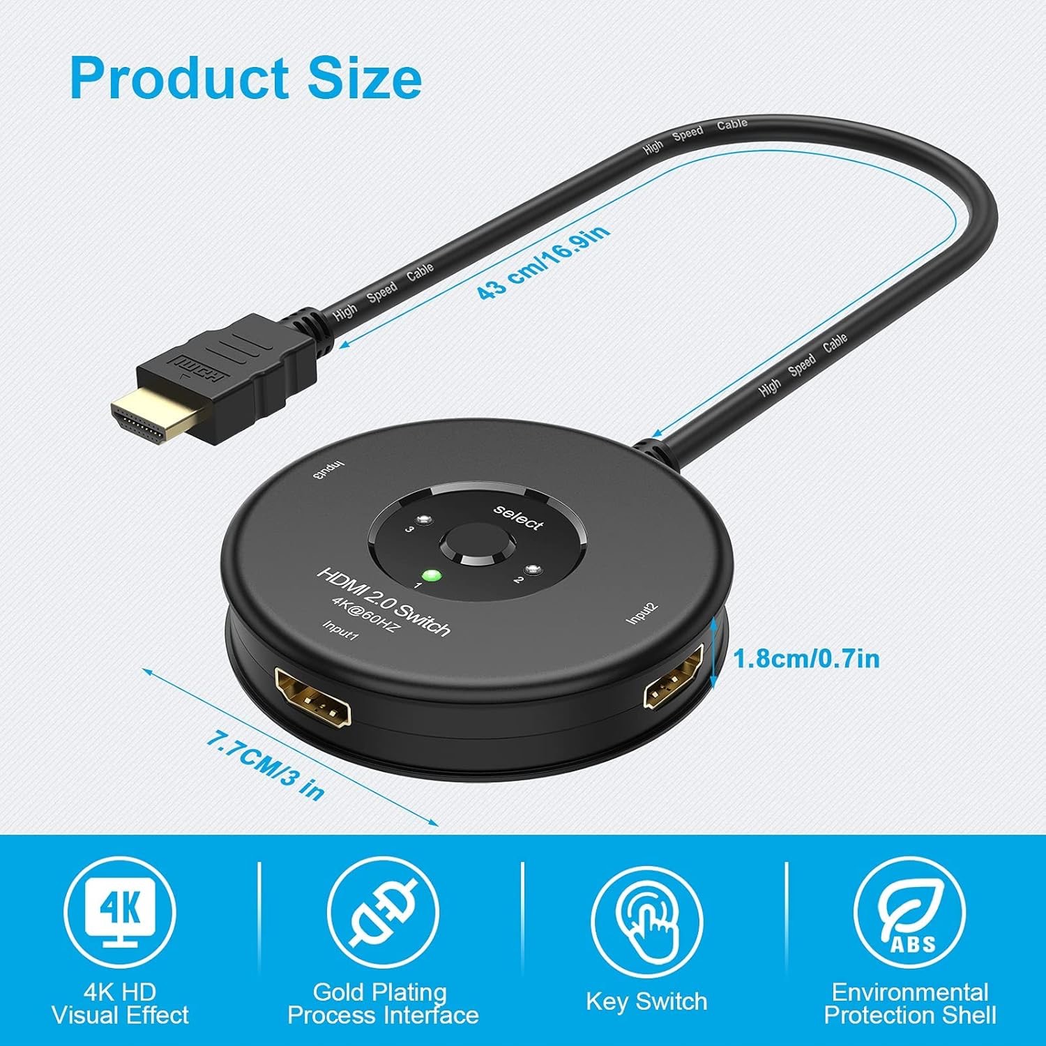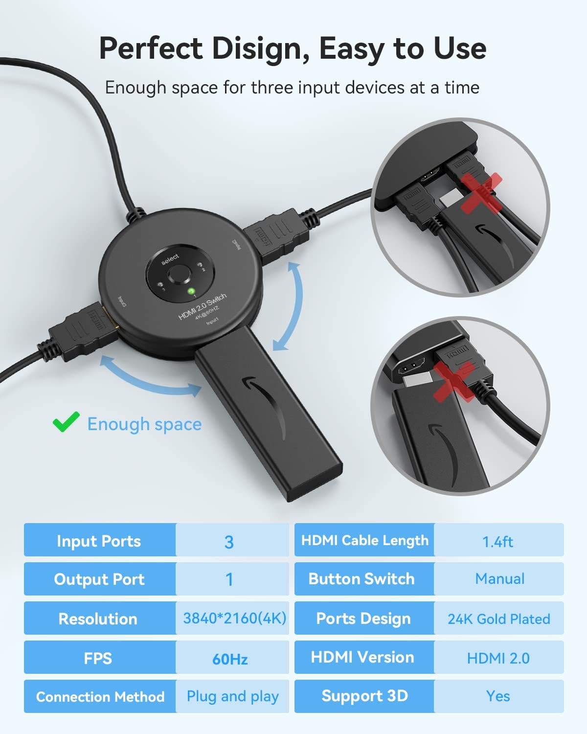 سوئیچ HDMI چندگانه با کانکتورهای مقاوم در برابر خوردگی با روکش طلای 24K برای اطمینان از انتقال سیگنال برتر، عملکرد بالا تا 18 گیگابیت بر ثانیه و پهنای باند بالا، بدون تأخیر، بدون افت کیفیت تصویر یا صدا را فراهم میکند. به شما امکان میدهد از دیدی مانند فیلمهای با کیفیت بالا و راحتی روان لذت ببرید.