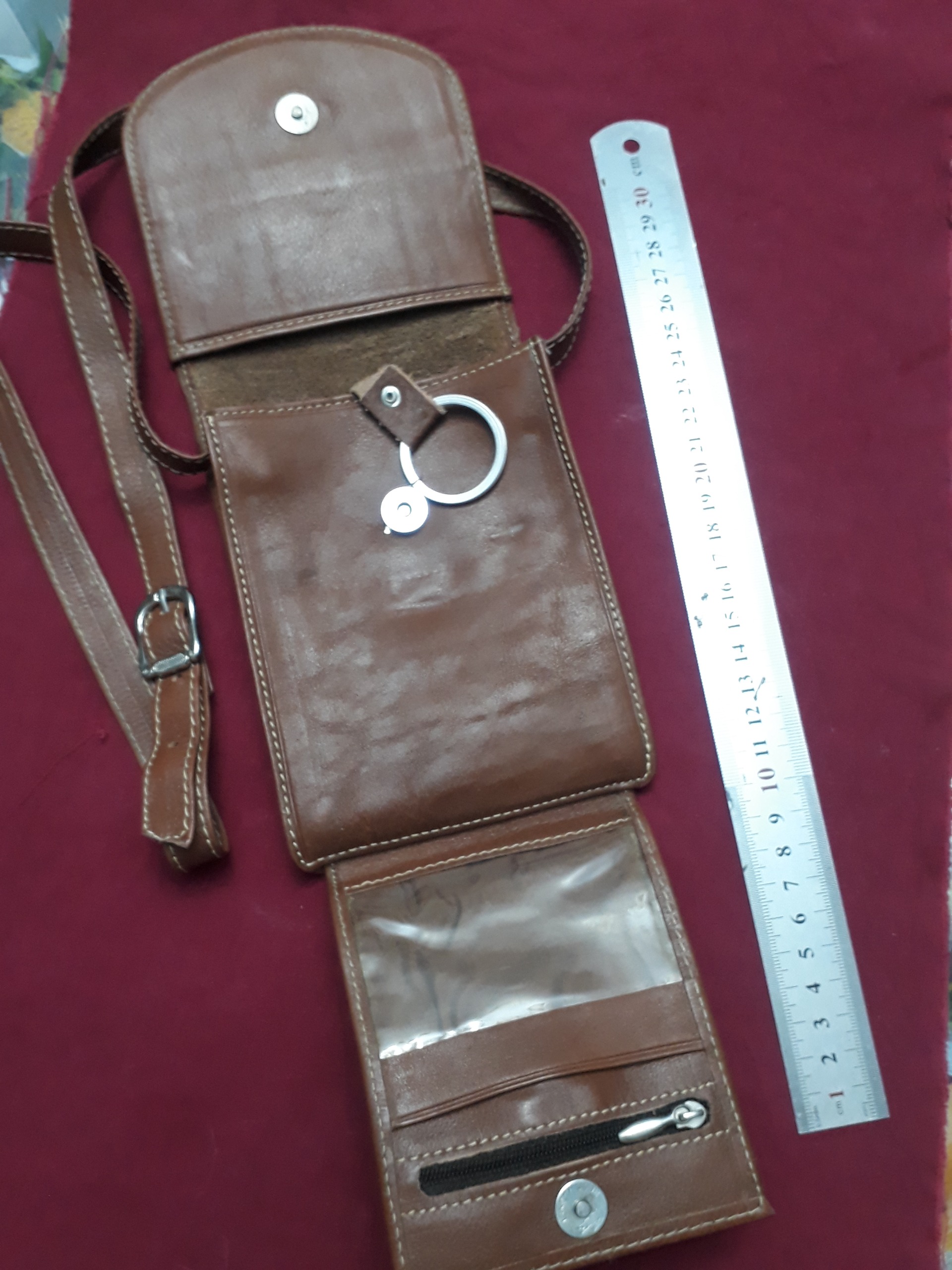 کیف چرمی طبیعی قهوه ای روشن.