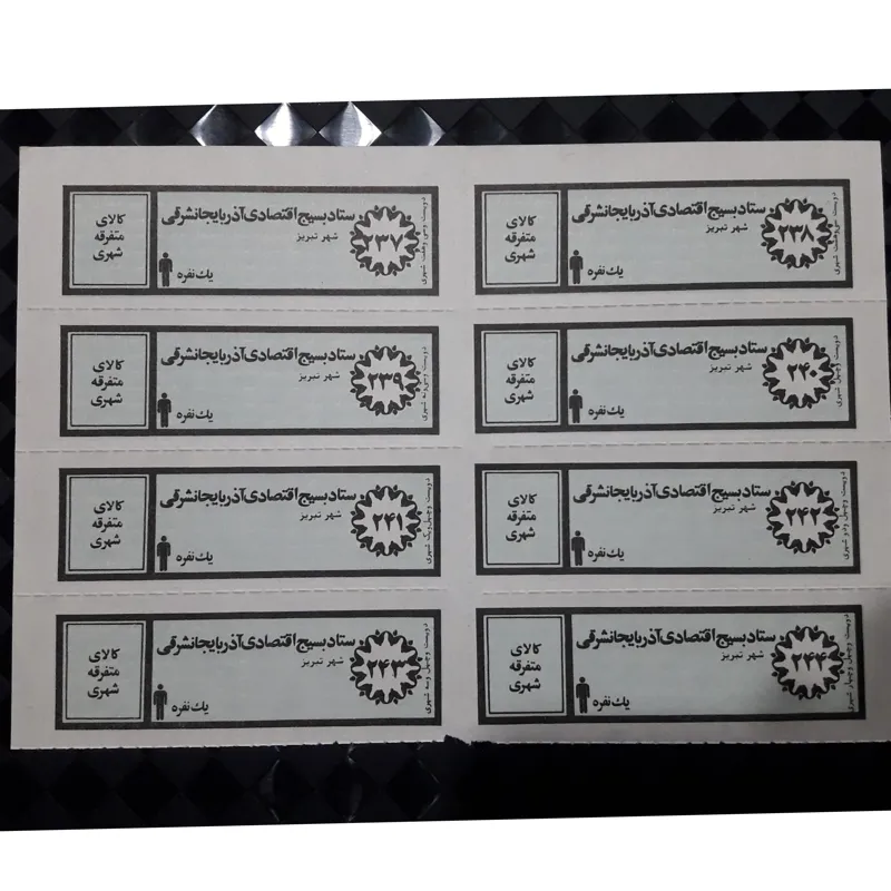 ورق کامل کوپن قدیمی کالای متفرقه شهری یکنفره تبریز
