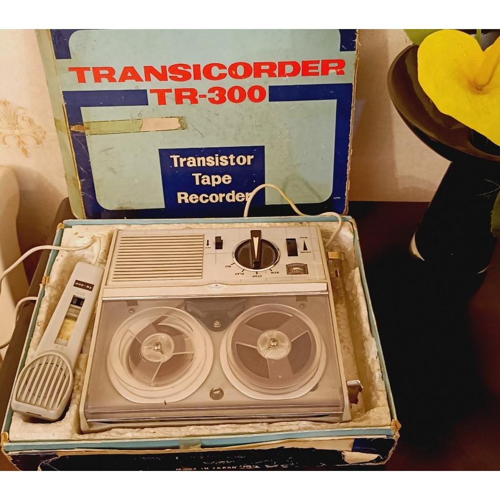 یک دستگاه پخش ترنسیک 300-TR ضبط ریلی ساخت کشور ژاپن کاملا سالم حتا باتری های چند ده ساله داخلش هنوز کار میکنه دستگاه دارای جعبه اصلی . این دستگاه  قابل حمل  دارای ولم کنترل سرعت متغیر است. نگهدارنده باتری 6 AA اصلی با یک کانکتور سرعت با -میکروفون مغناطیسی اصلی