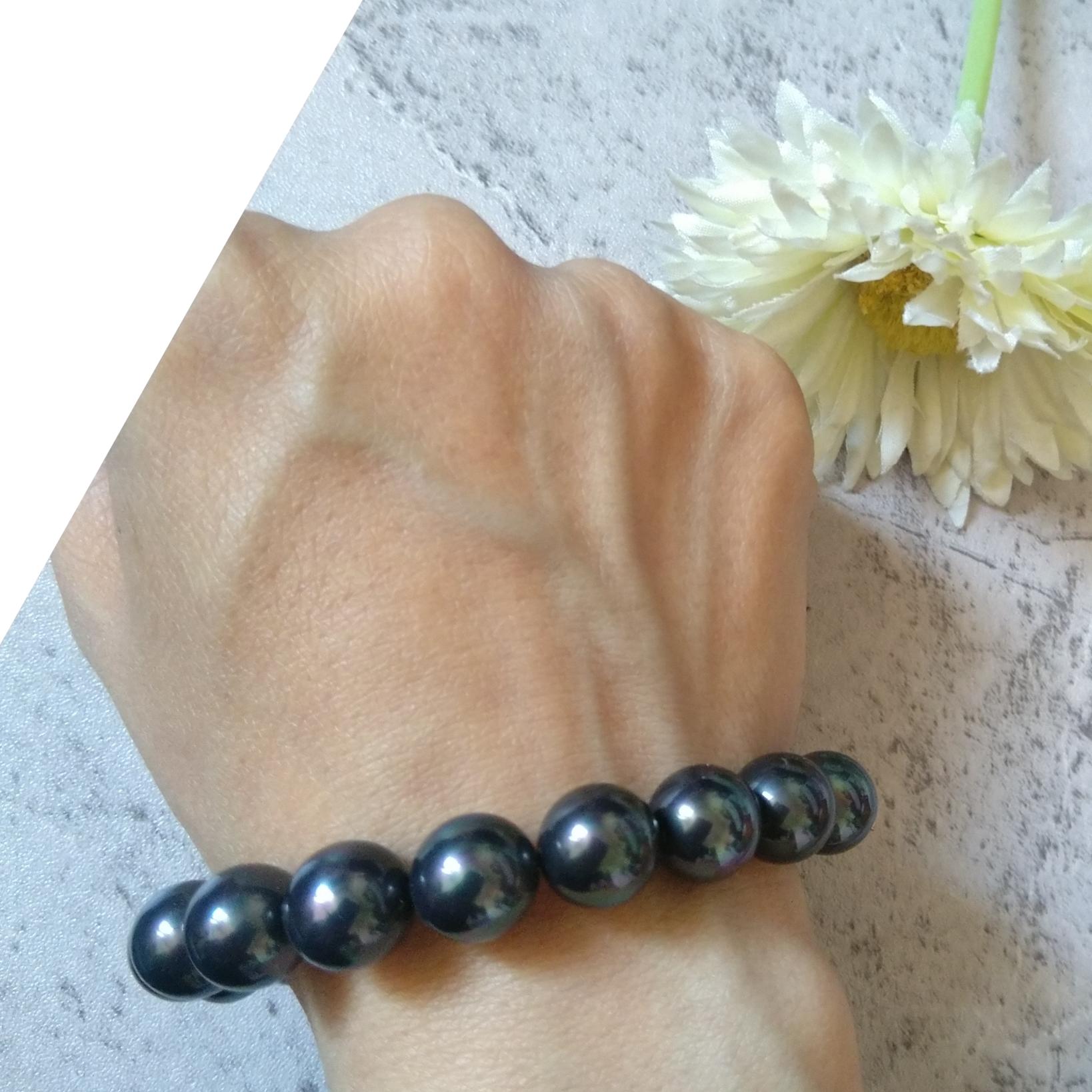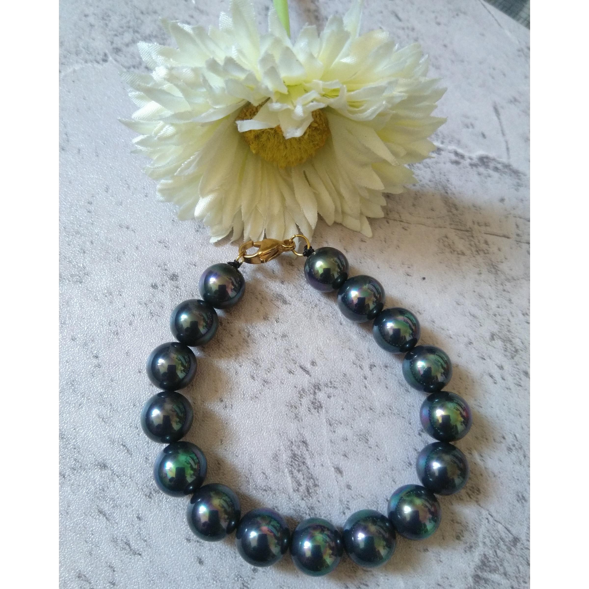 دستبند مروارید شل سیاه پرطاووسی