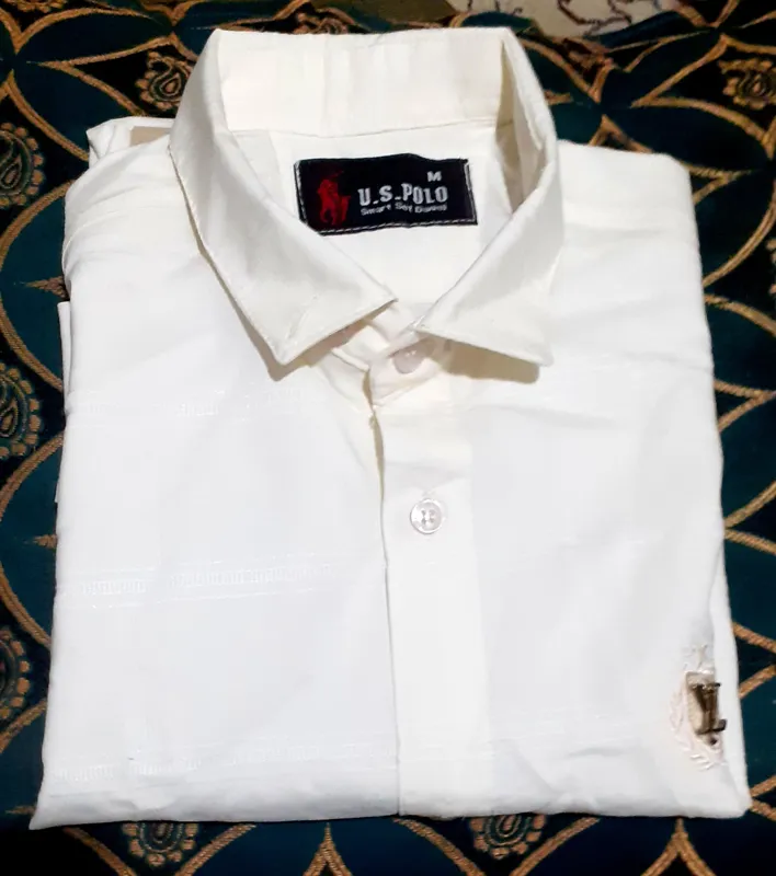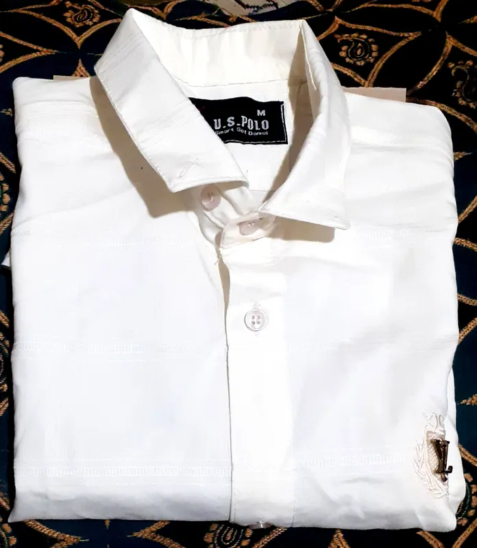 پیراهن زیبای مردانه و مجلسی خیلی شیک و زیبا برند U.S.POLO کرم رنگ
