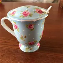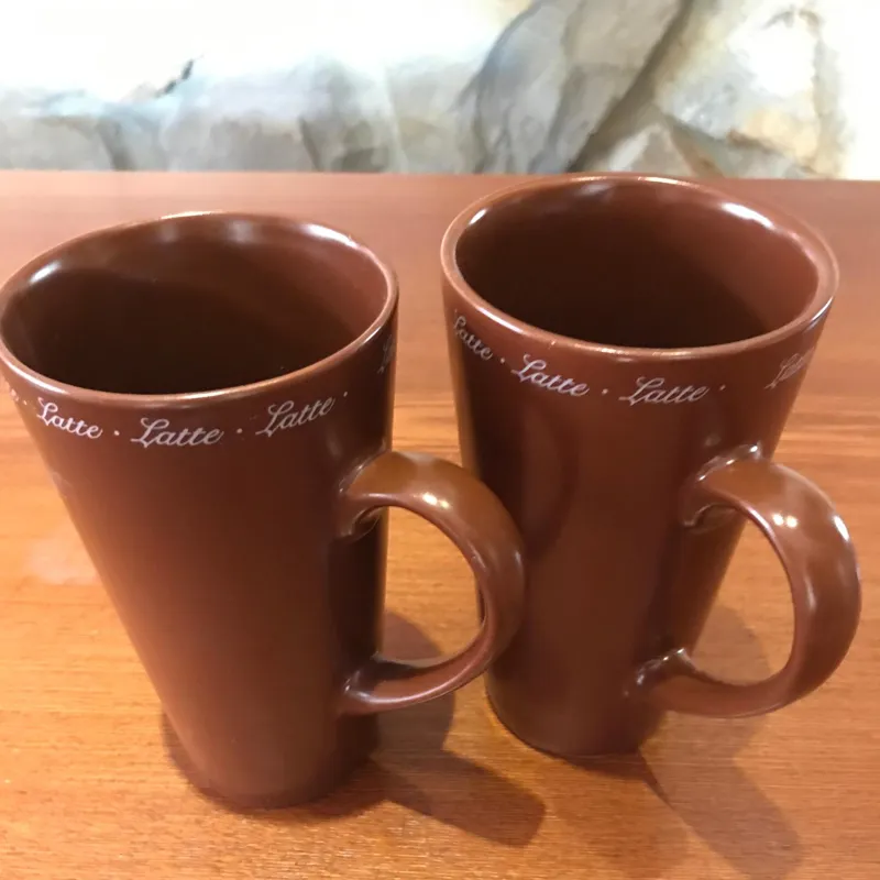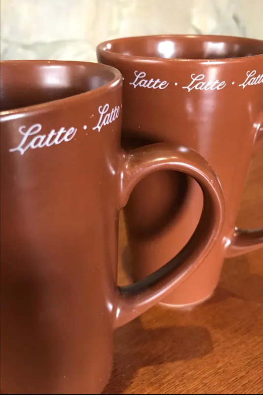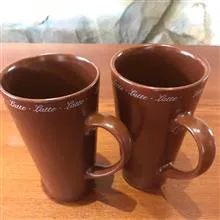ماگ بلند سرامیکی قهوه ای 2 عدد و ماگ دردار و قاشق دار 1عدد در مجموع 3 عدد
