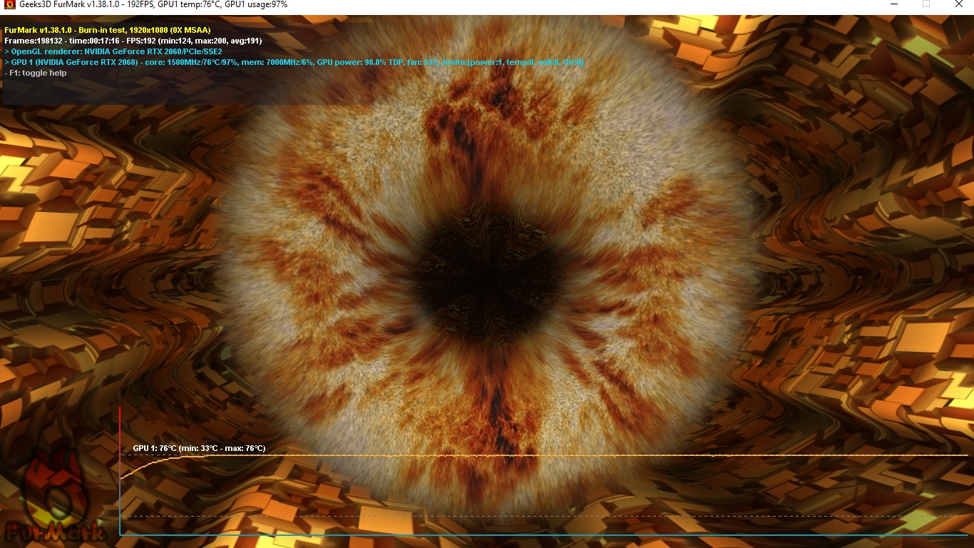 نتیجه تست فورمارک که نهایت فشار وارد شده به گرافیک در حدود 17 دقیقه و رزولیشن 1920*1080 FHD که در عکس آخر قرار داده شده (مشاهده فرمایید) دما کارت نهایت به 76 درجه میرسه که نشان از سلامت گرافیک میباشد