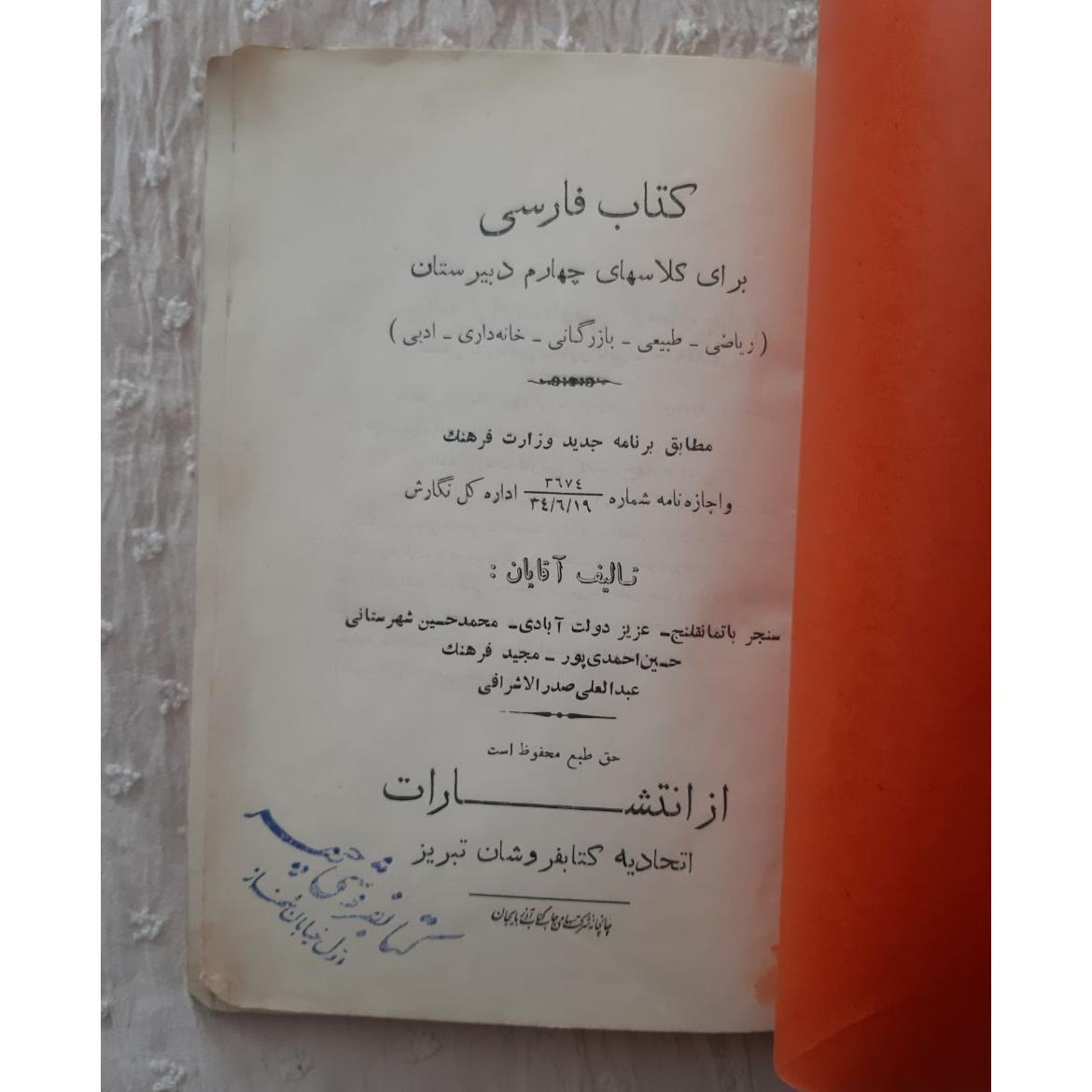 فارسی چهارم دبیرستان 1334، مهر دارد و کهنه شده
