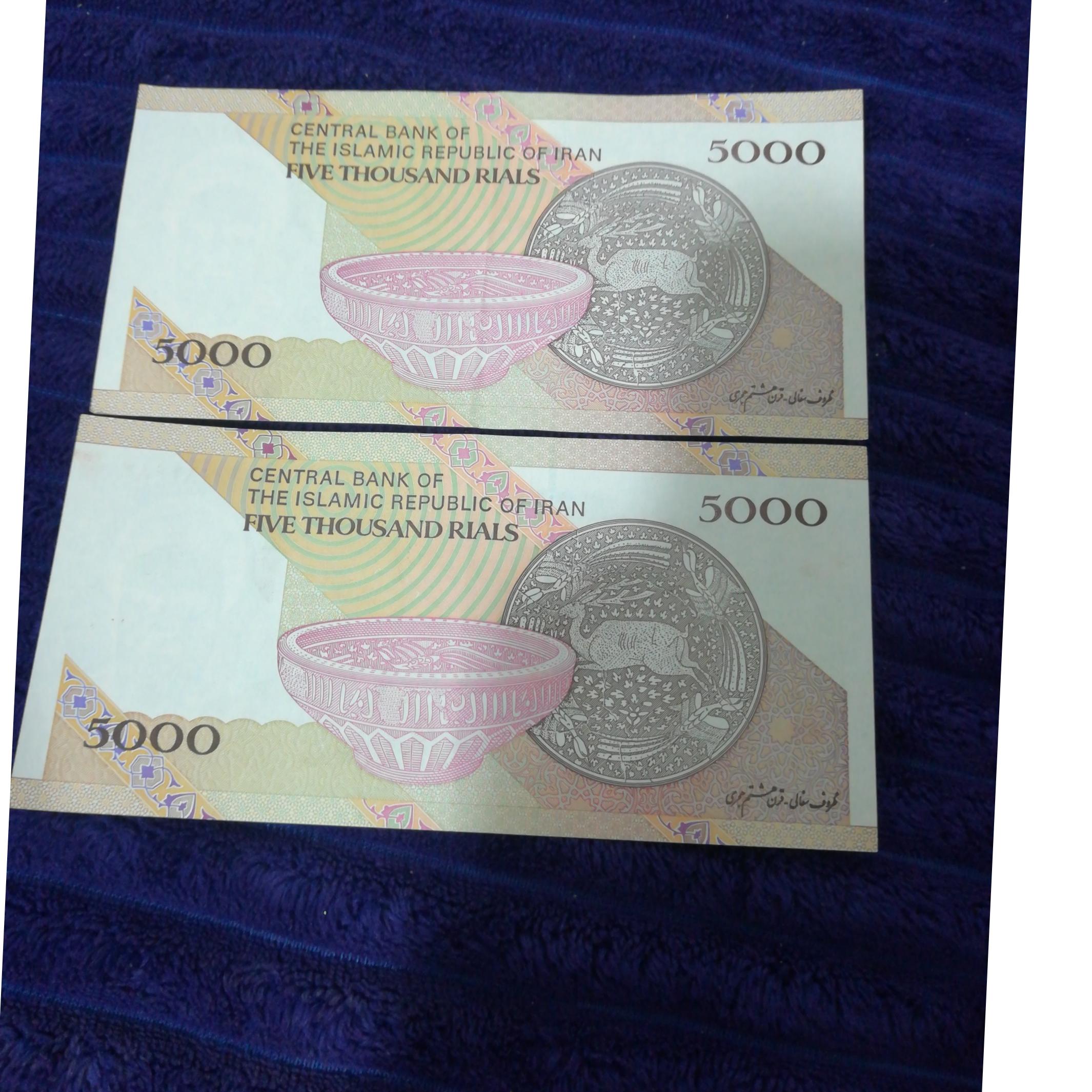 یه جفت اسکناس 5000 ریالی کیفیت بانکی سریال پشت سرهم