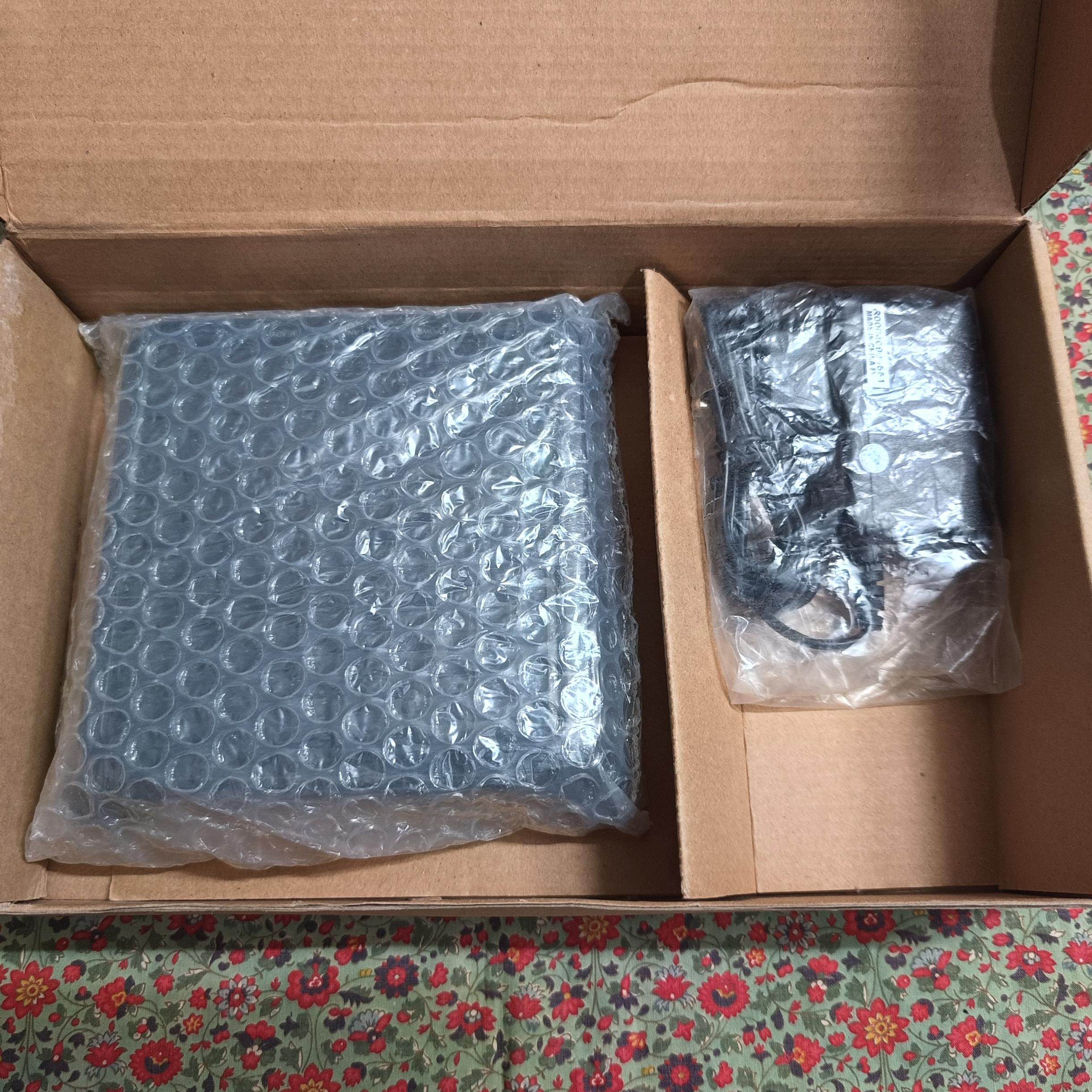 به همراه تبدیل USB/PS2 و آداپتور برق و داکت اتصال به مانیتور و پیچ نصب داخل کارتن در حد نو استفاده نشد است.
