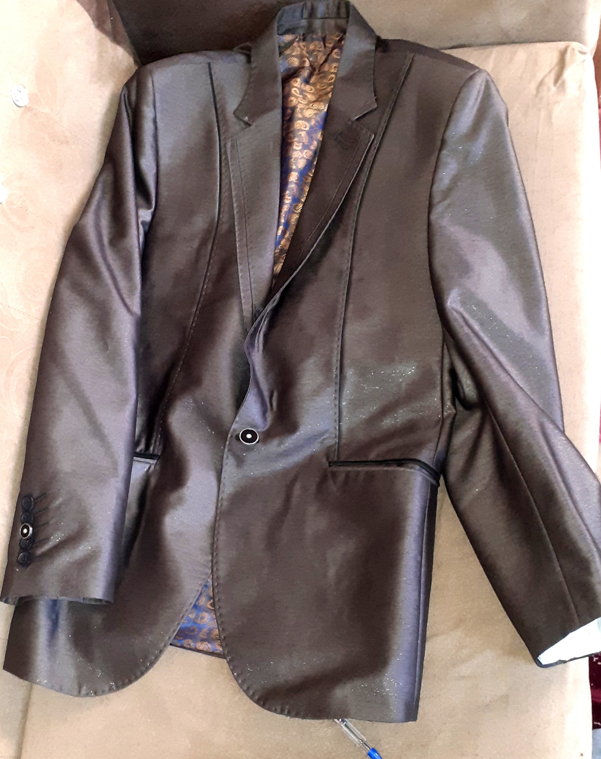 کت و شلوار مجلسی مردانه قهوه ای براق برند M MANŚ