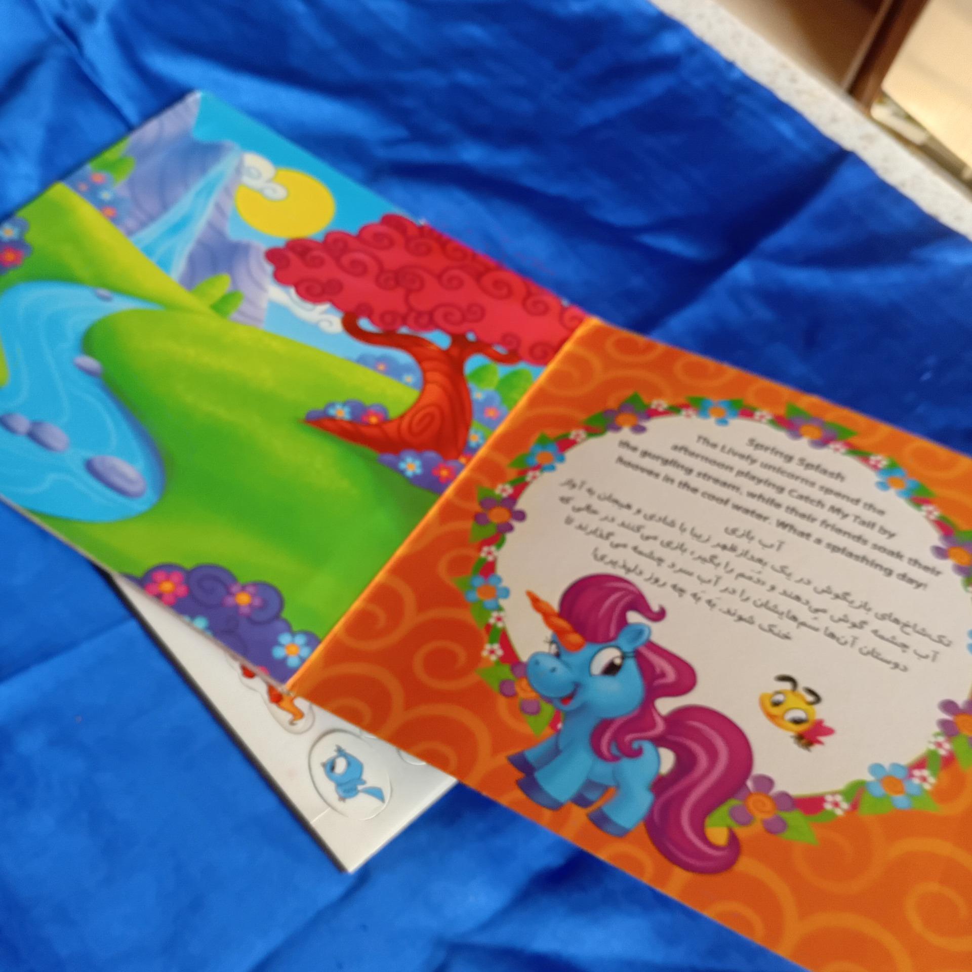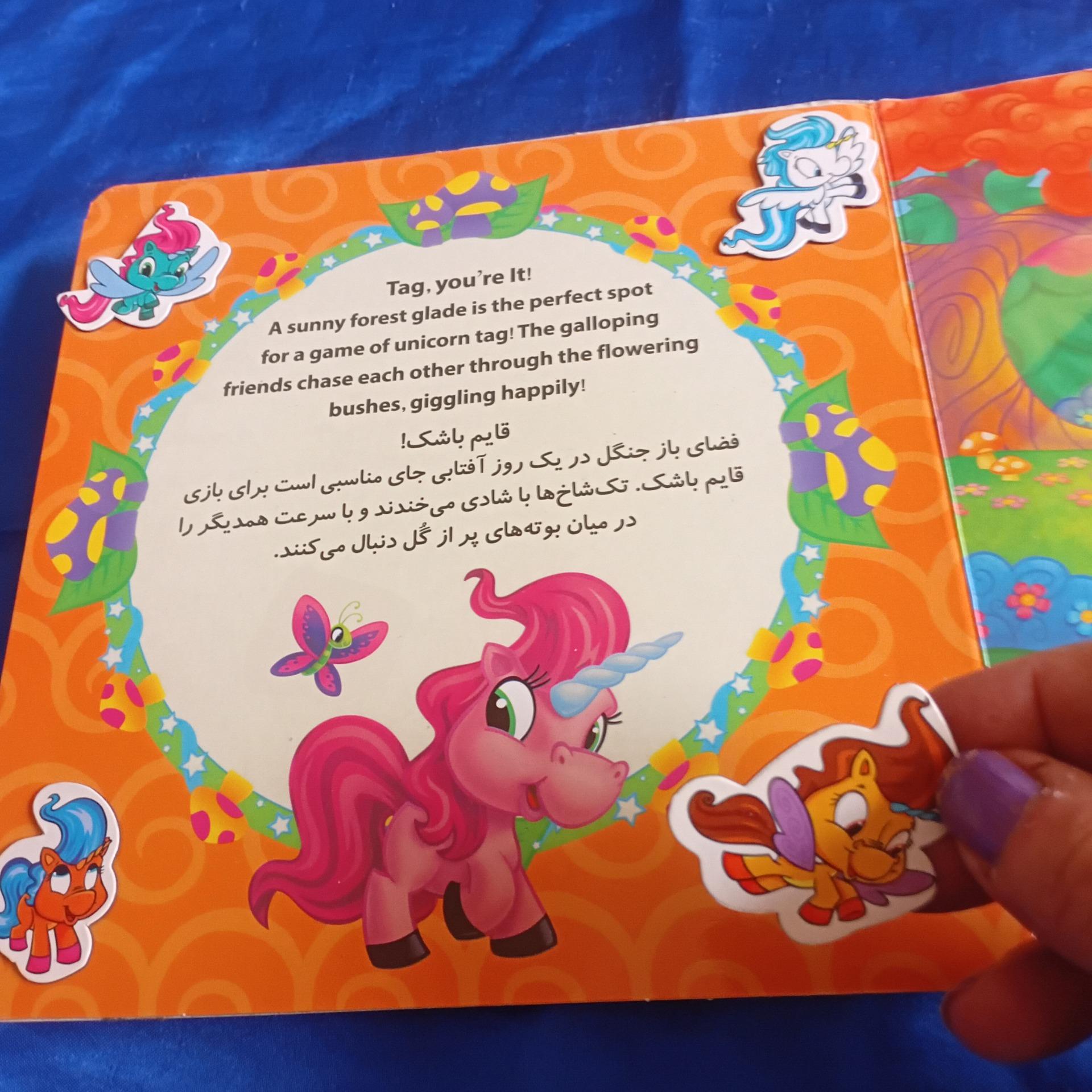 یک صفحه مگنت آهنربای ربا شامل 26 عدد از یونی کورن که میشه تو تمام صفحات ازش استفاده بشه یعنی داستان یادگیری زبان انگلیسی و بازی هم زمان