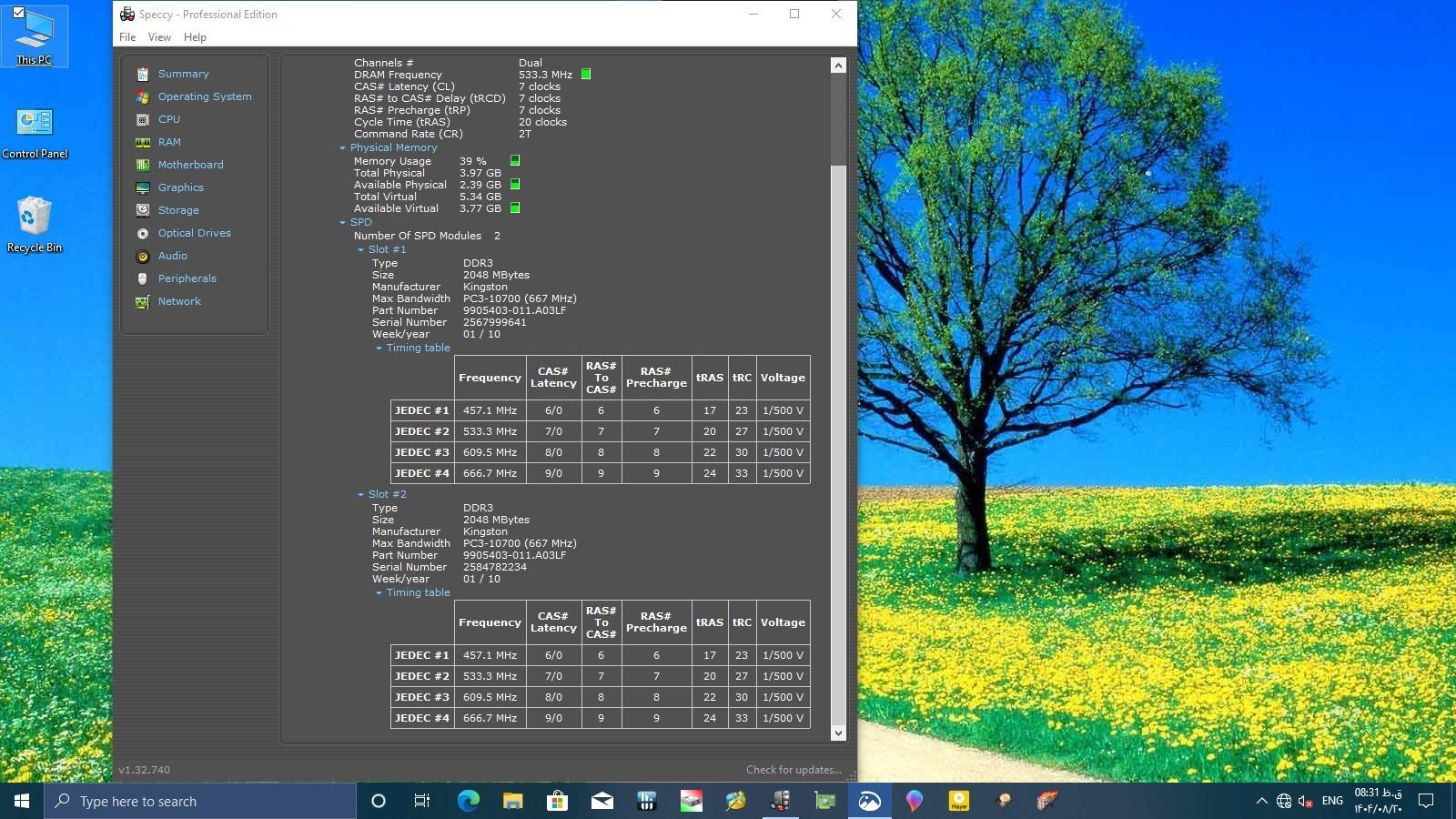 مشخصات رم در تست ویندوز در عکس4 نشان داده شده.