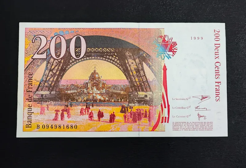 اسکناس تک 200 فرانک فرانسه 1999 توضیح دارد