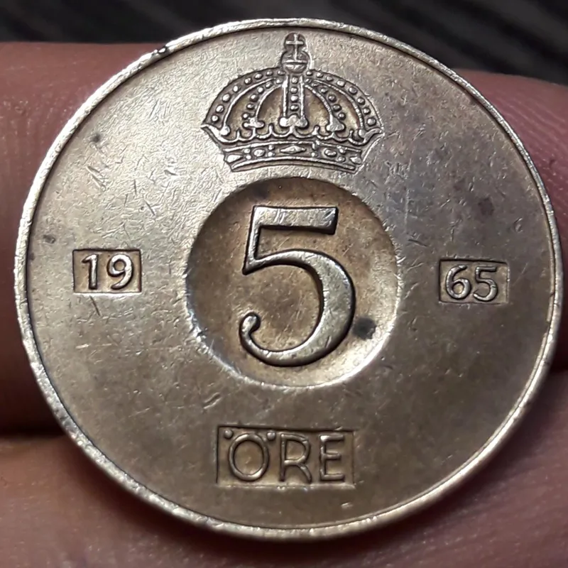سکه کلکسیونی قدیمی 5 اوره کرون سوئد 1965کد 394