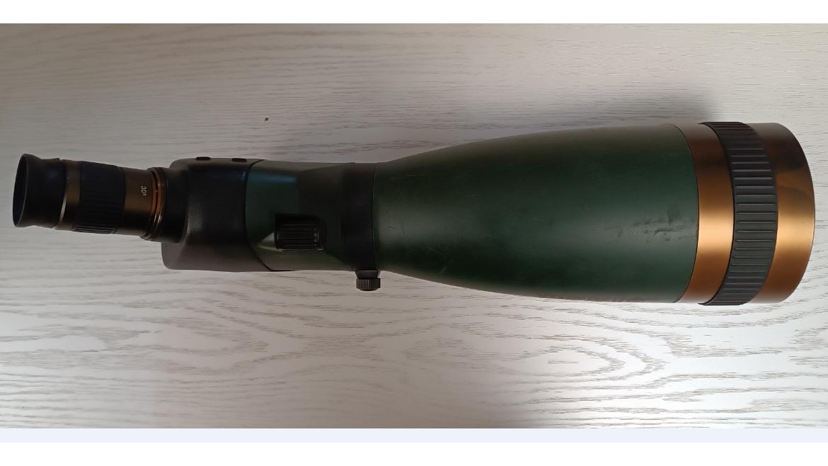دوربین تک چشمی (اسپاتینگ اسکوپ) برند ویژن کینگ مخصوص هدفزنی و تیراندازی ورزشی پرنده نگری و مناظر طبیعی قابلیت نصب روی سه پایه عکاسی قطر شیئی 90 میلیمتر بزرگنمائی متغیر از 30 تا 90 برابر از لحاظ اپتیکی سالم اما بدنه خط و خش داره (عکس شماره 5) متعلقات فقط یک کیف برزنتی که زیپ ندارد