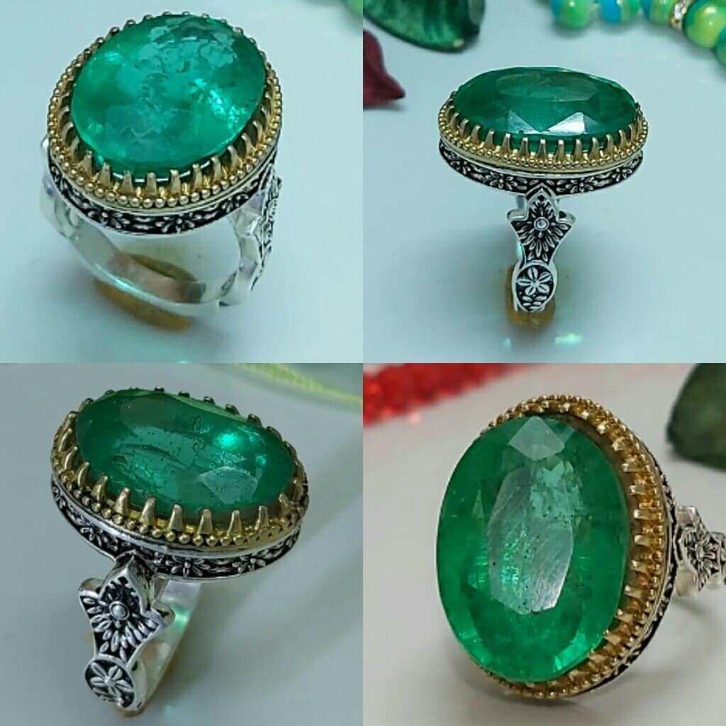 انگشتر نقره زمرد اصل اسپرت (مردانه و زنانه)