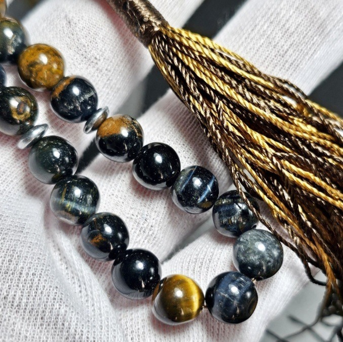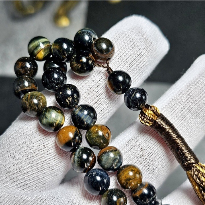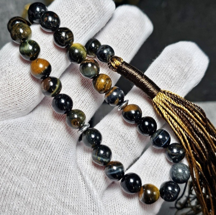 تسبیح 33 تایی چشم ببر مشکی | انرژی، قدرت و تمرکز در دستان شما