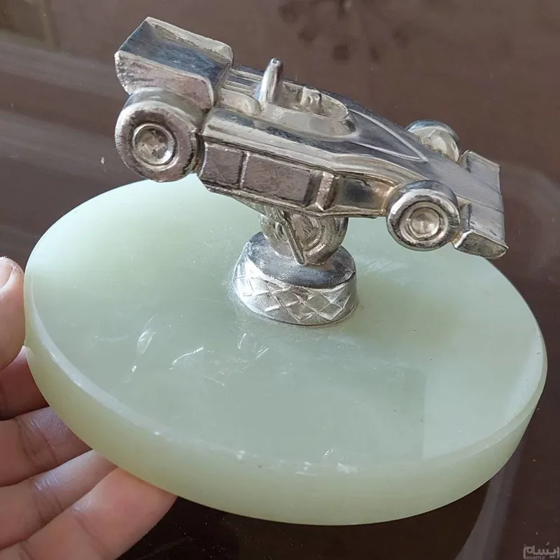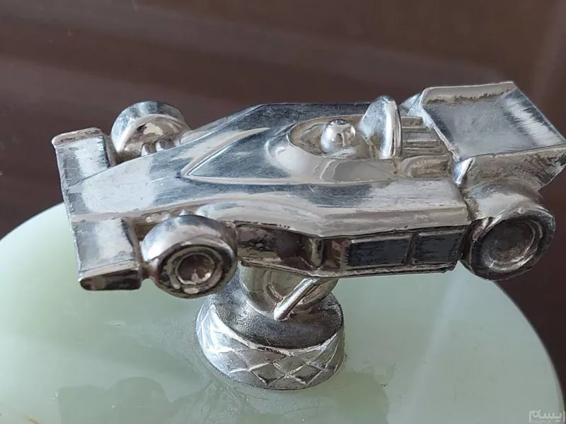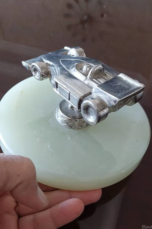 ماکت فلزی ماشین مسابقه ای مطابق تصاویرزیبا وعالی نصب شده روی پایه سنگ مرمر مارک ماشین مشخص نیست خو م همینجوری نوشتم. مک لارن وزن خود ماکت ماشین حدود سیصد تا چهارصدگرمه با پابه مرمر حدود یک کیلووسیصد گرمه