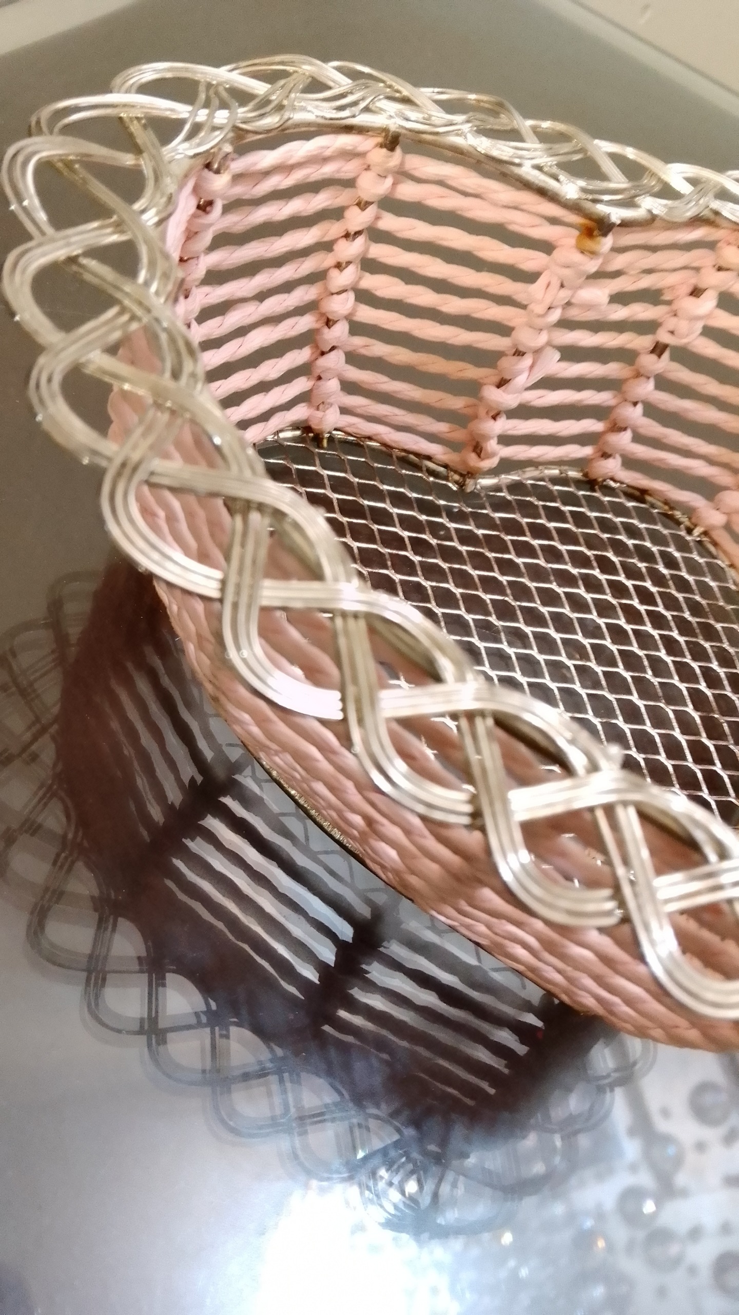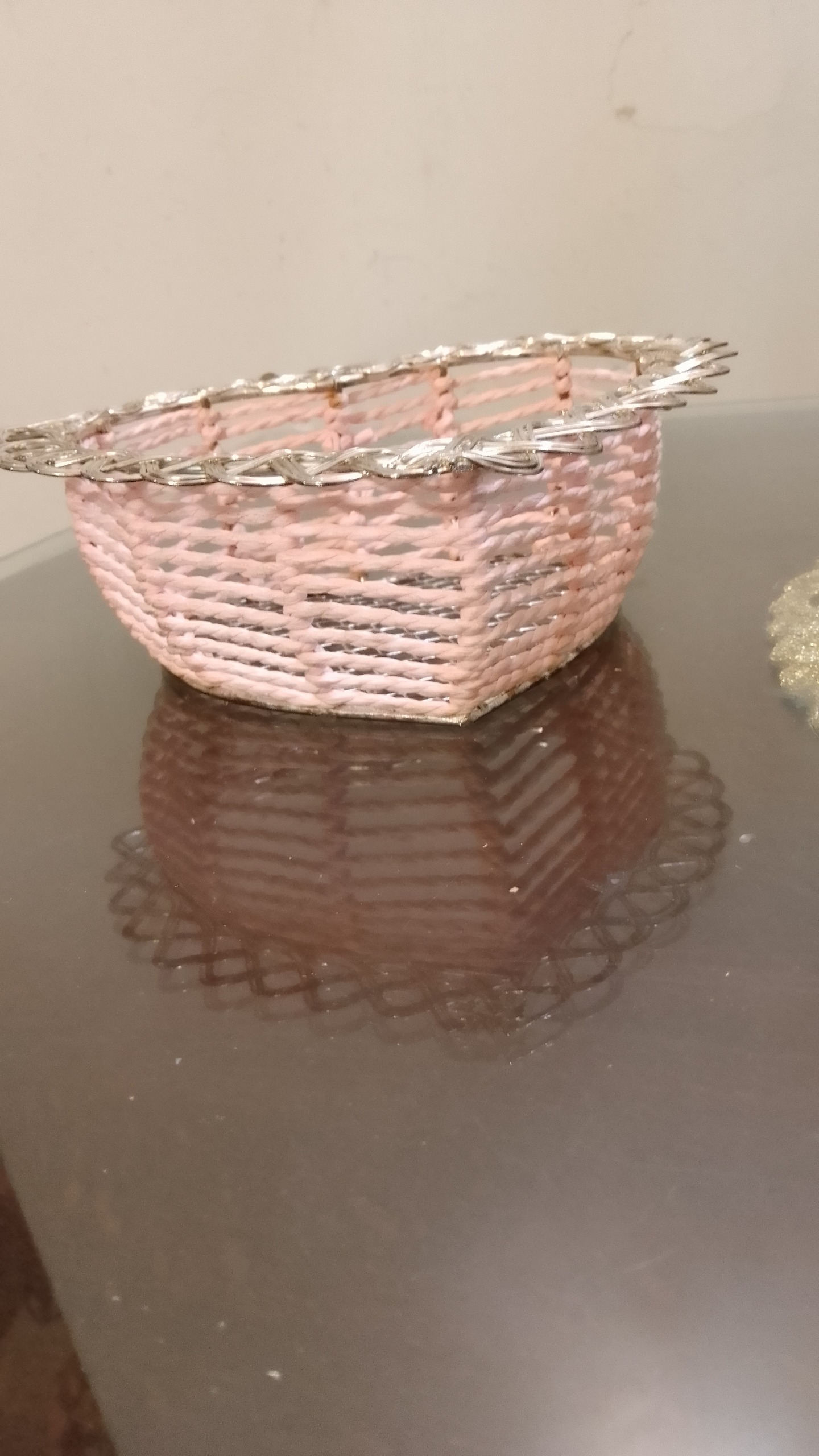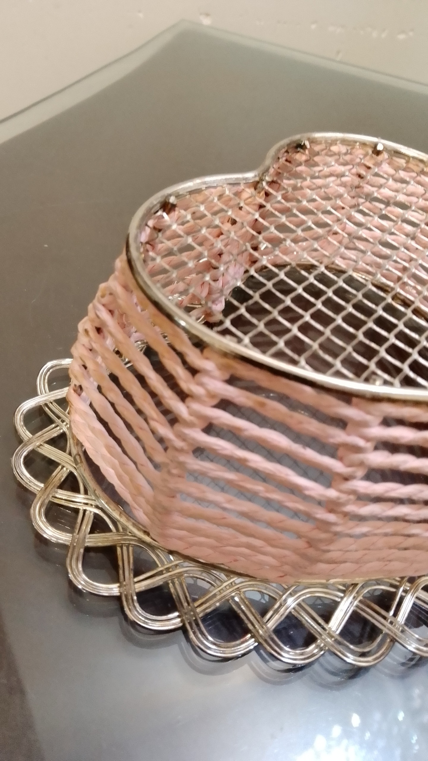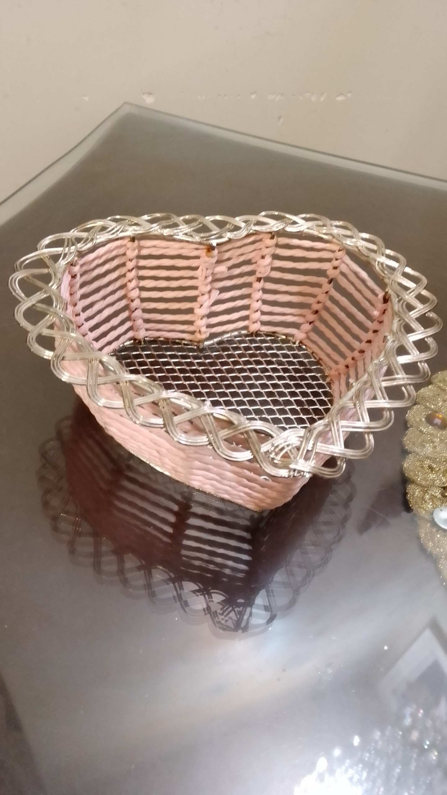 سبد طرح قلب ترکیب بافت و فلز رنگ سیلور