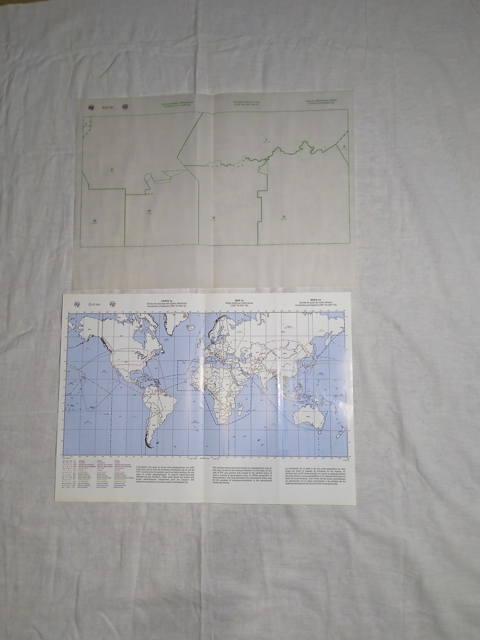 2عدد نقشه مسیرهای هوانوردی و ترانزیت زمین زاویه اقیانوس آرام و اطلس سال 2001 کاملاً نو