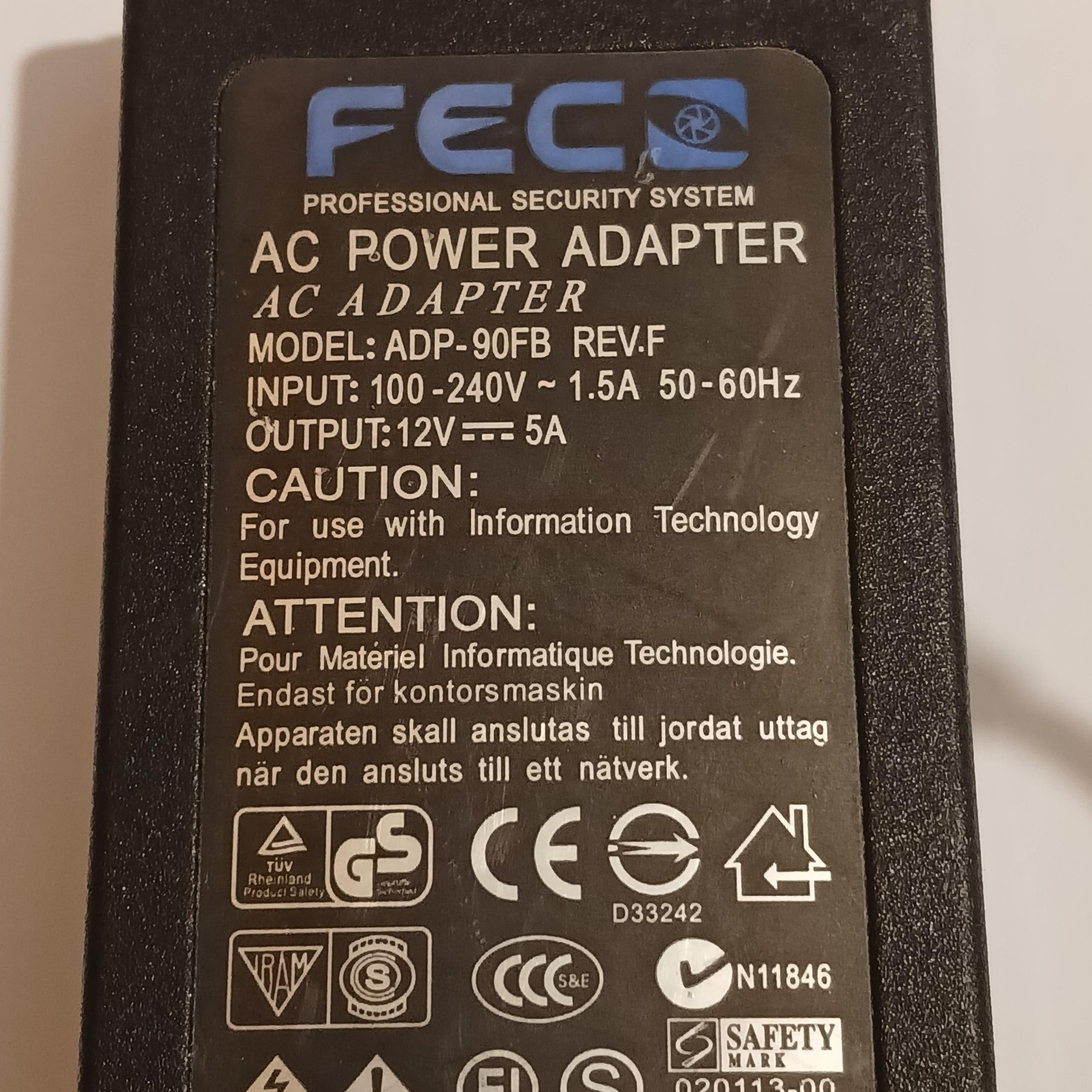 آداپتور 12 ولت 5 آمپر مارک FECO