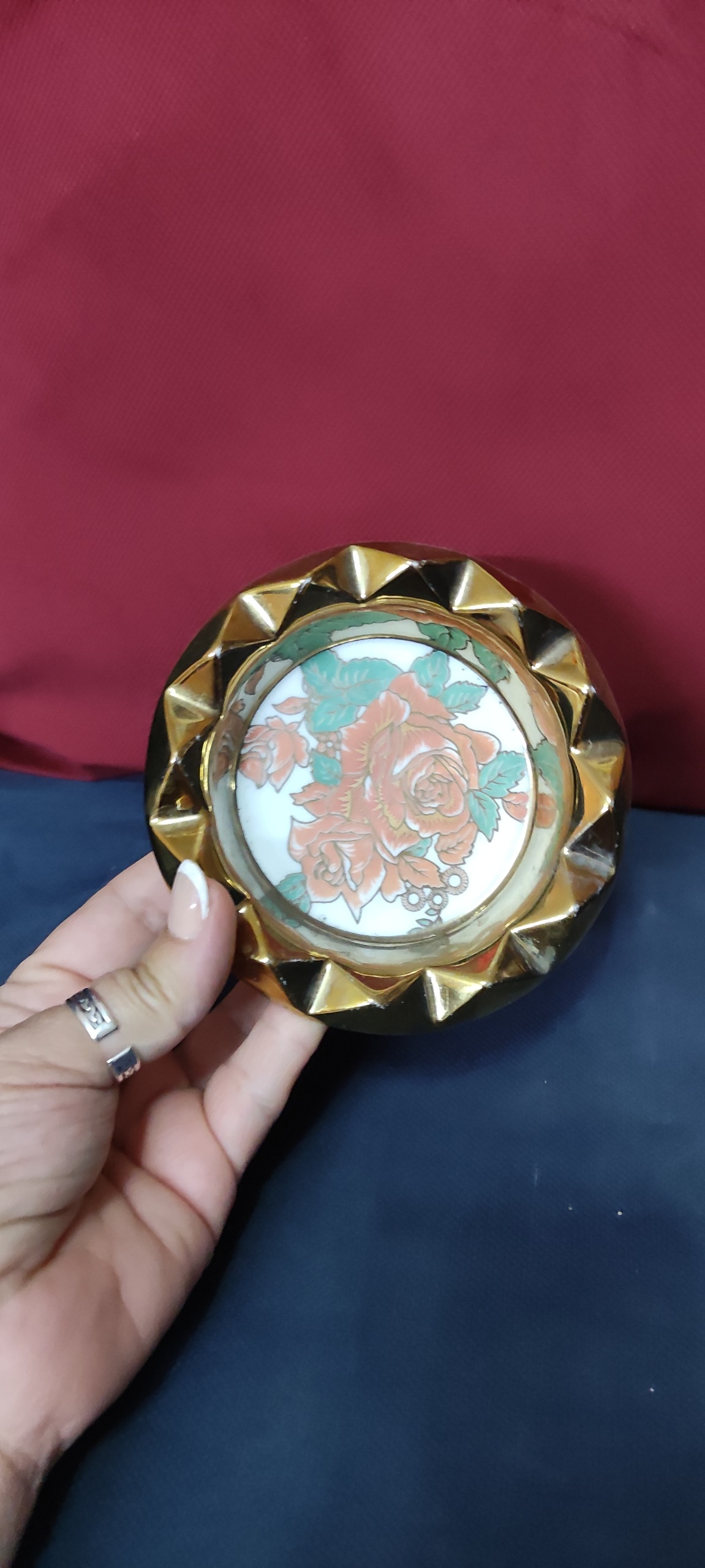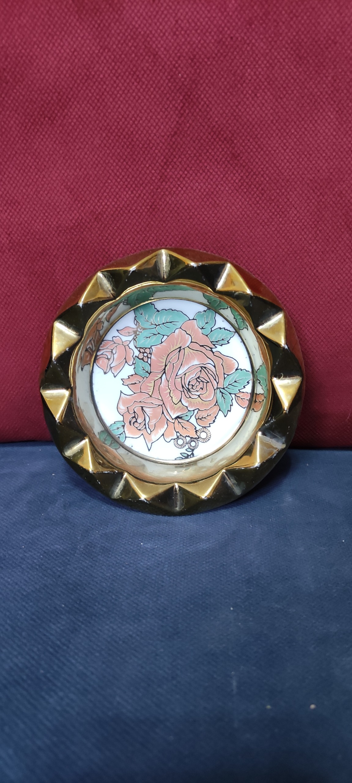 زیر سیگاری بسیار زیبا و کلکسیونی و آنتیک و قدیمی پر لز طلاکوبی
