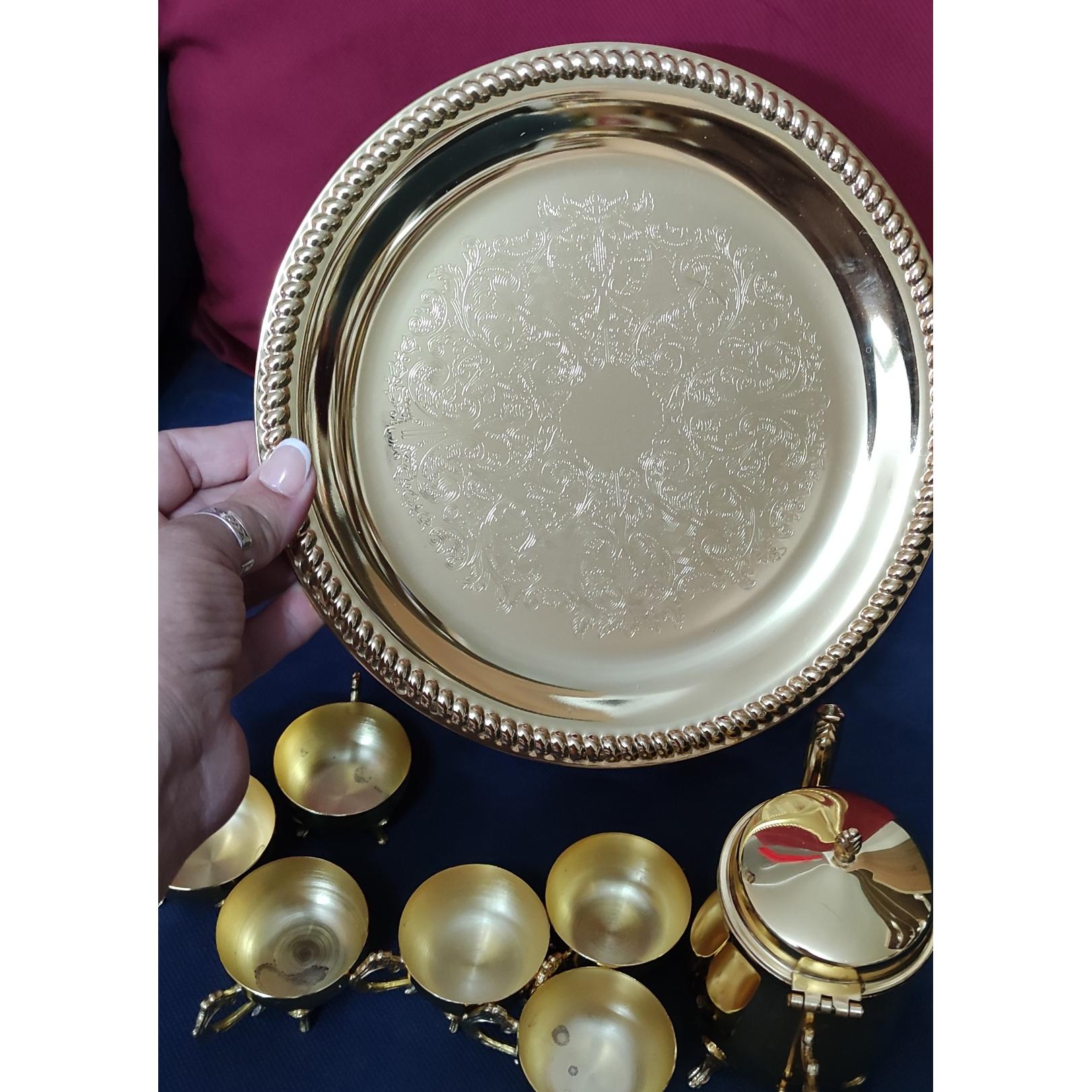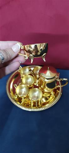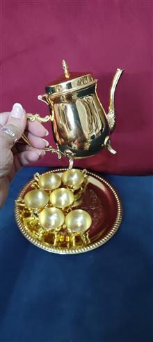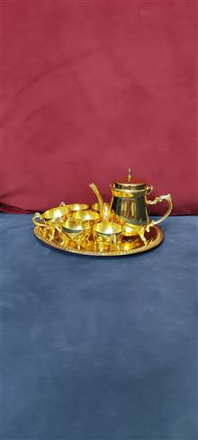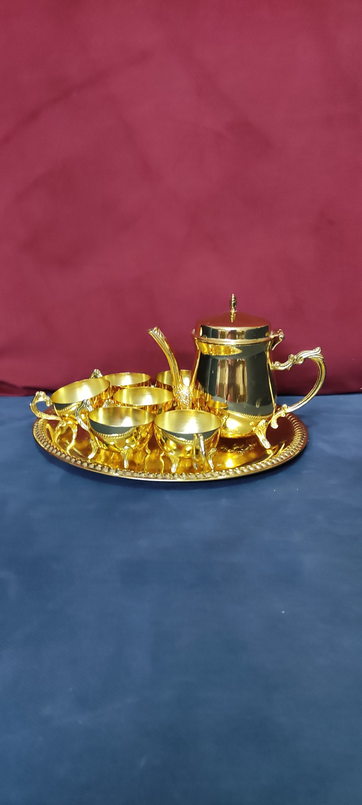 سرویس قهوه خوری 8 پارچه برنجی شامل 6 فنجان و 1 قوری و 1 سینی میباشد.