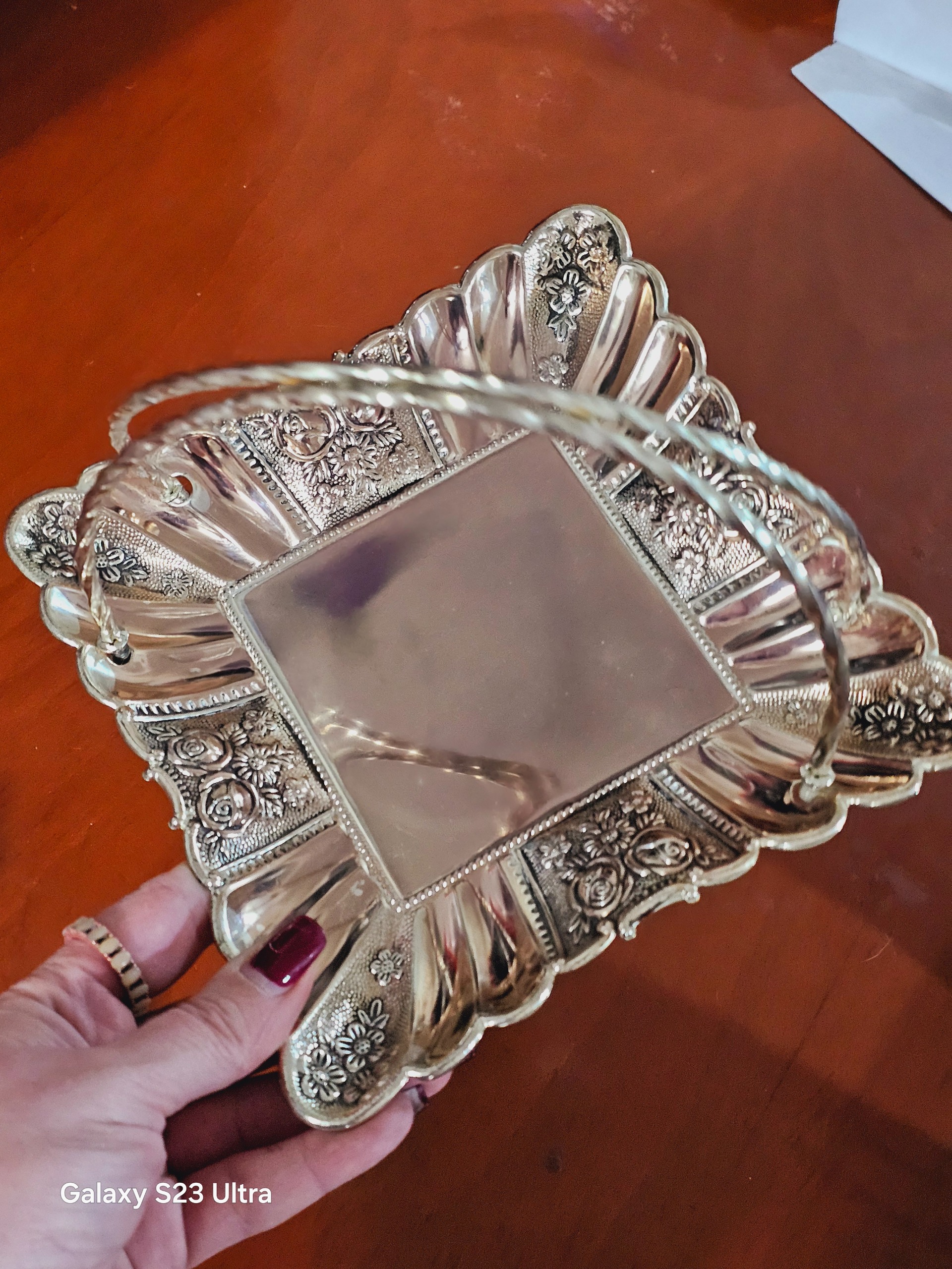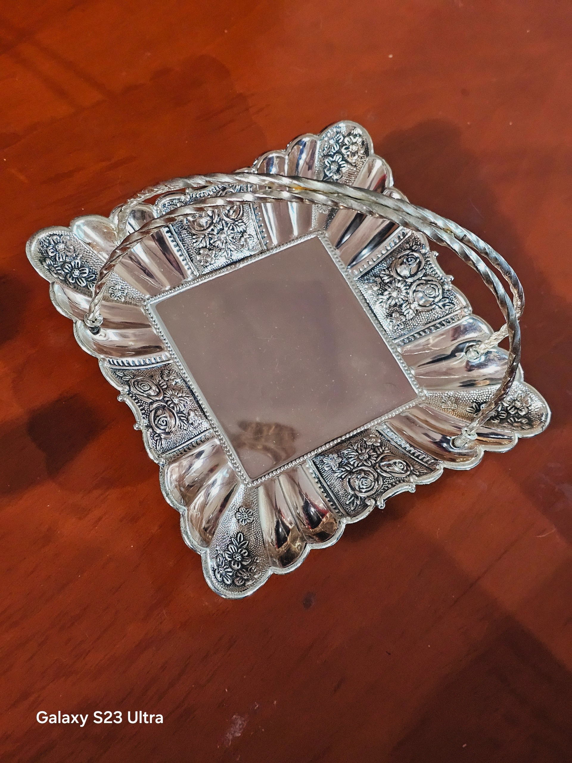 شیرینی خوری سیلور دسته دار بدون خط و خش قدیمی رنگش به مسی میزنه به عکسها نگاه کنید بدون خط و خش تمییزه
