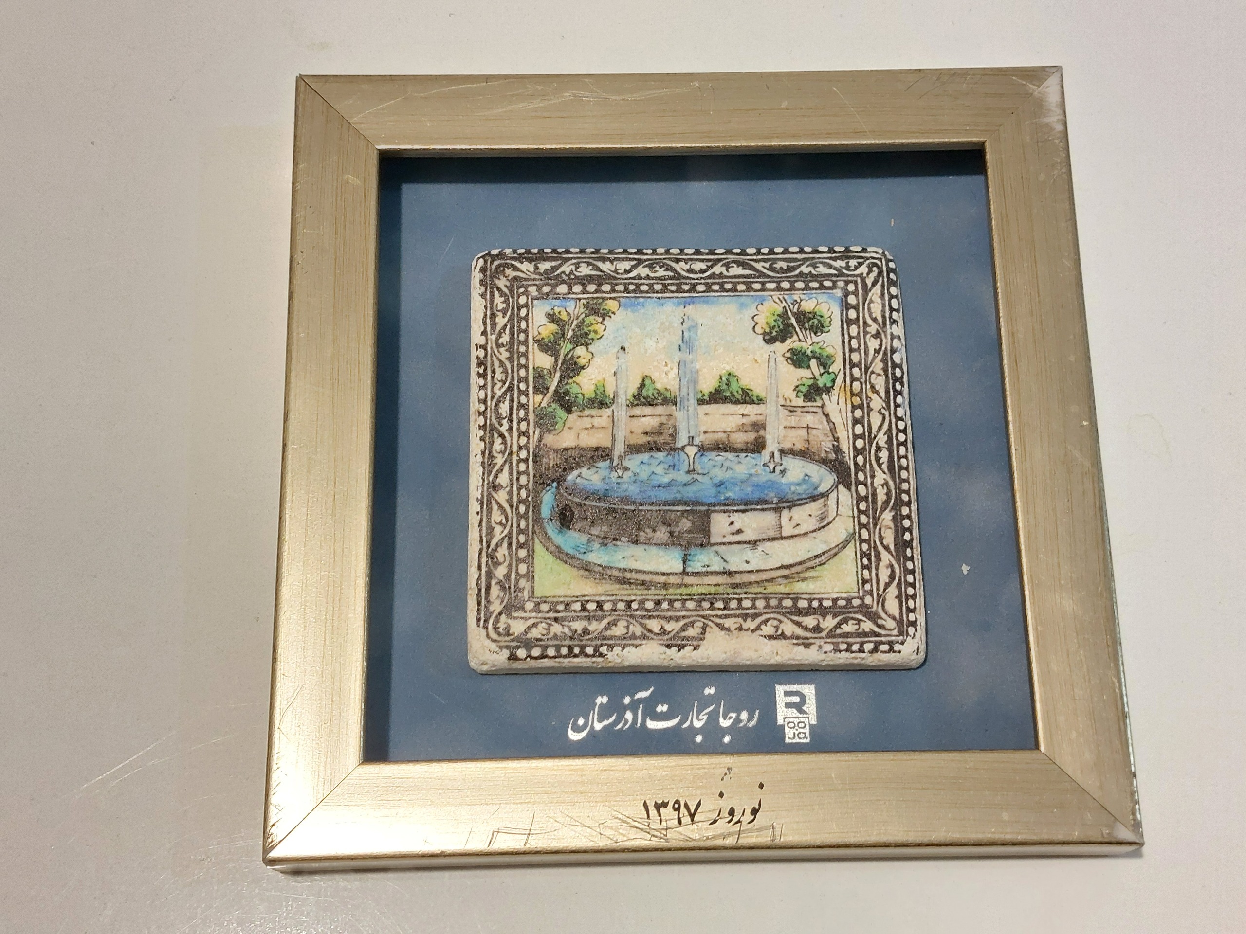 تابلو سنگ سیترا، بازآفرینی کاشی حوض نقاشی، دوره قاجاریه، خانه مقدم، تهران، ایران