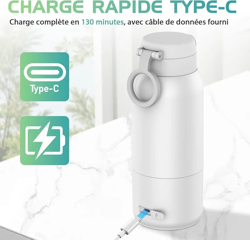 عمر طولانی باتری شیرگرمکن کاملاً شارژ شده میتواند 8 تا 10 بار به طور مداوم گرم شود، کابل شارژ نوع c، میتواند برق DC 5V/3A، DC 9V/3A، DC 12V/2.5A، DC 15V/2A، DC 20V/1.5A (هر یک از مشخصات) را وارد کند، 130 دقیقه برای پر کردن، سفرهای خارج از منزل، قطع برق در شب، بدون نگرانی.