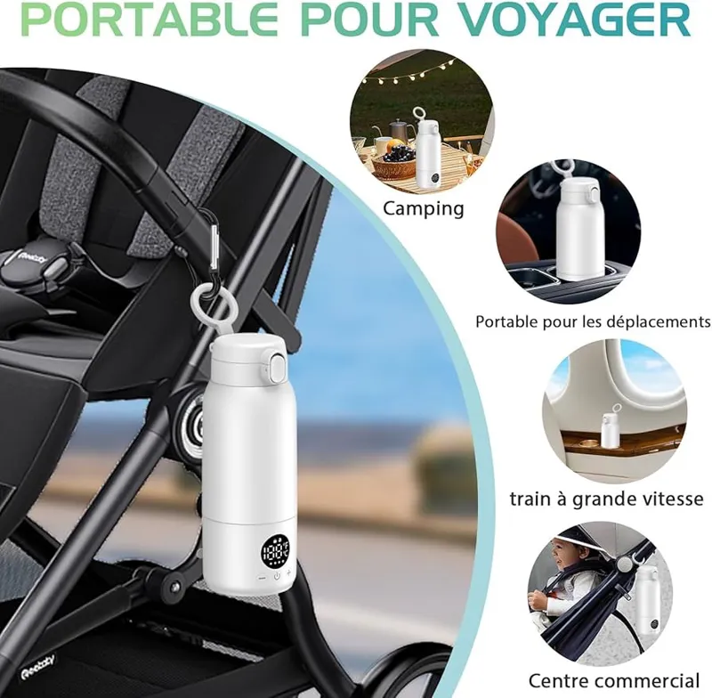 از قابلیت حمل لذت ببرید شیرگرمکن قابل حمل با مهر و موم ضد نشت، بدون نشت مایع، مناسب برای گرم کردن آب یا شیر، عالی برای استفاده در خانه، در حال حرکت، سفر و سایر سناریوها. طراحی بند کناری شیرگرمکن، آویزان کردن آن را به کالسکه یا کوله پشتی آسان میکند.