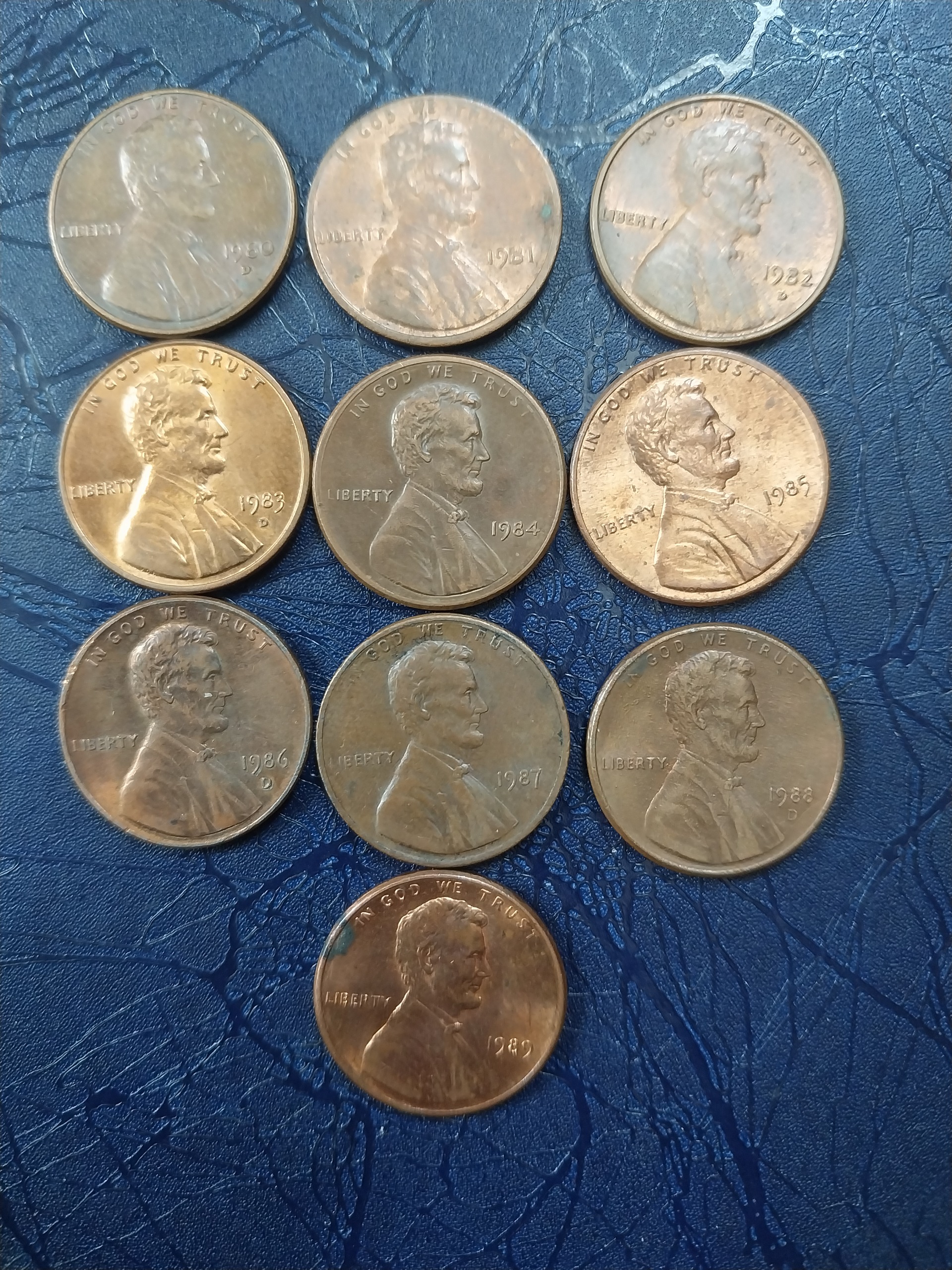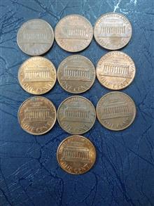 10 عدد سکه یک سنت امریکا از 1980 تا 1989 میلادی کیفیت مطابق با تصویر