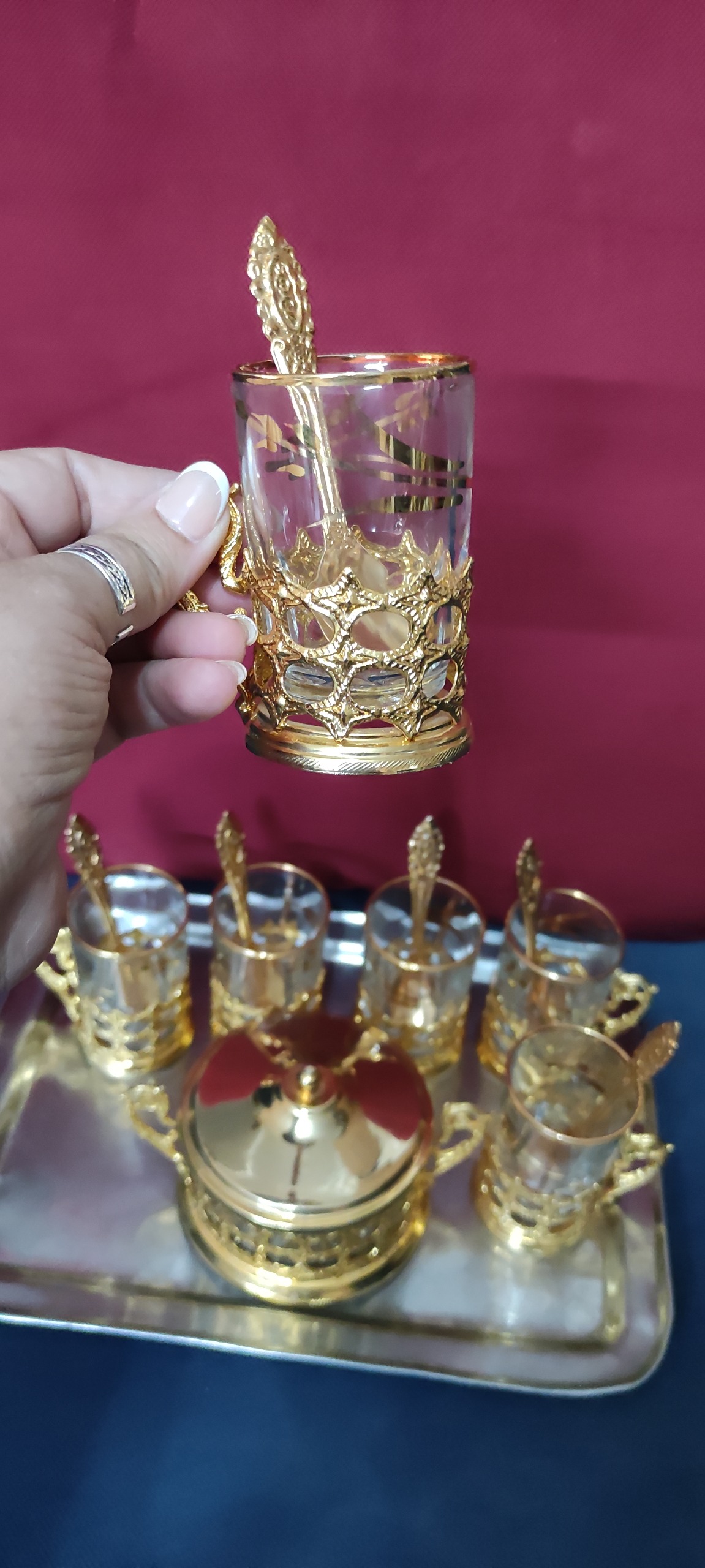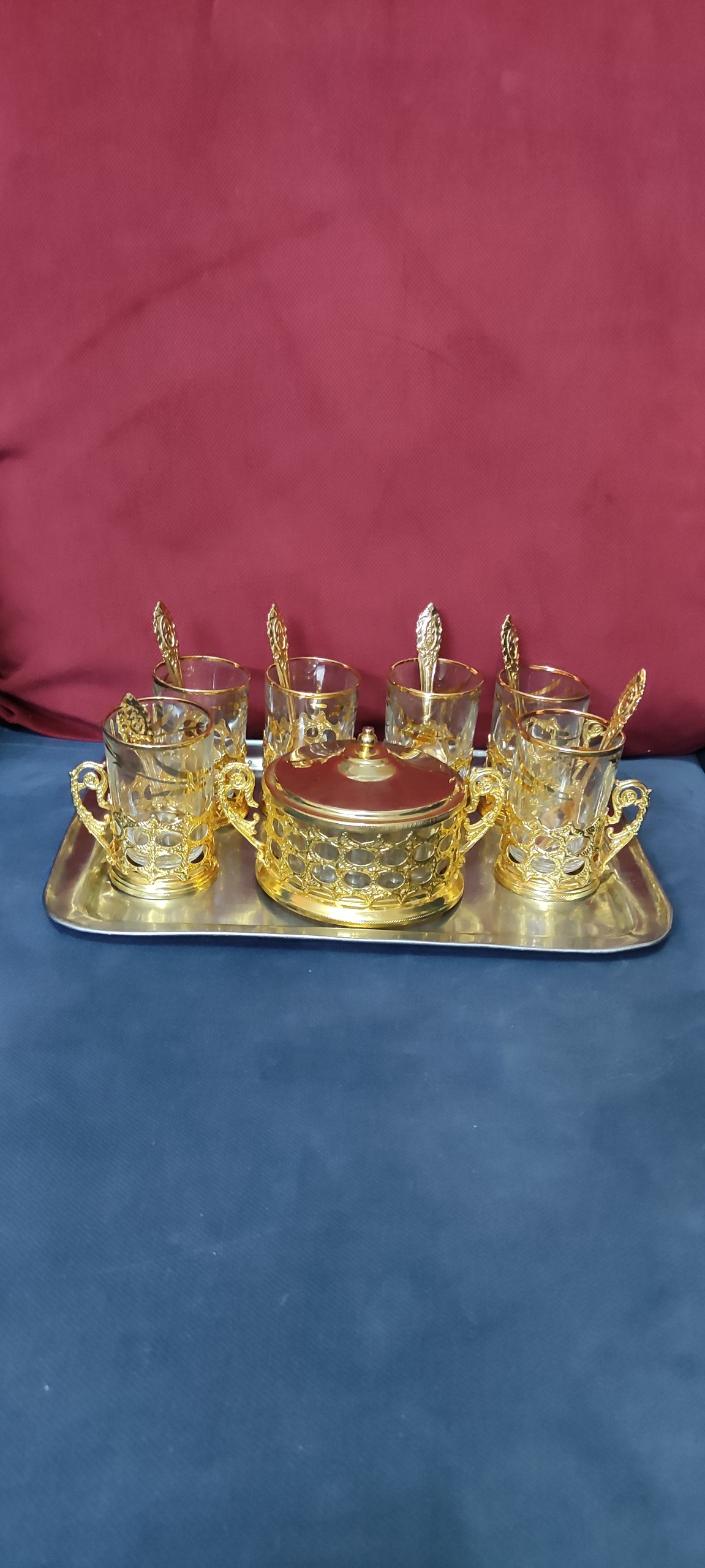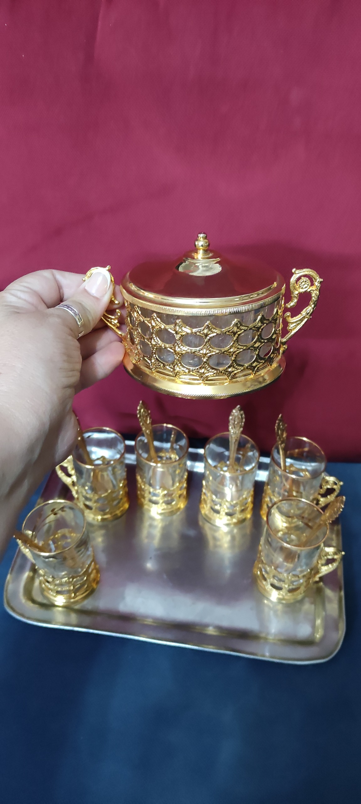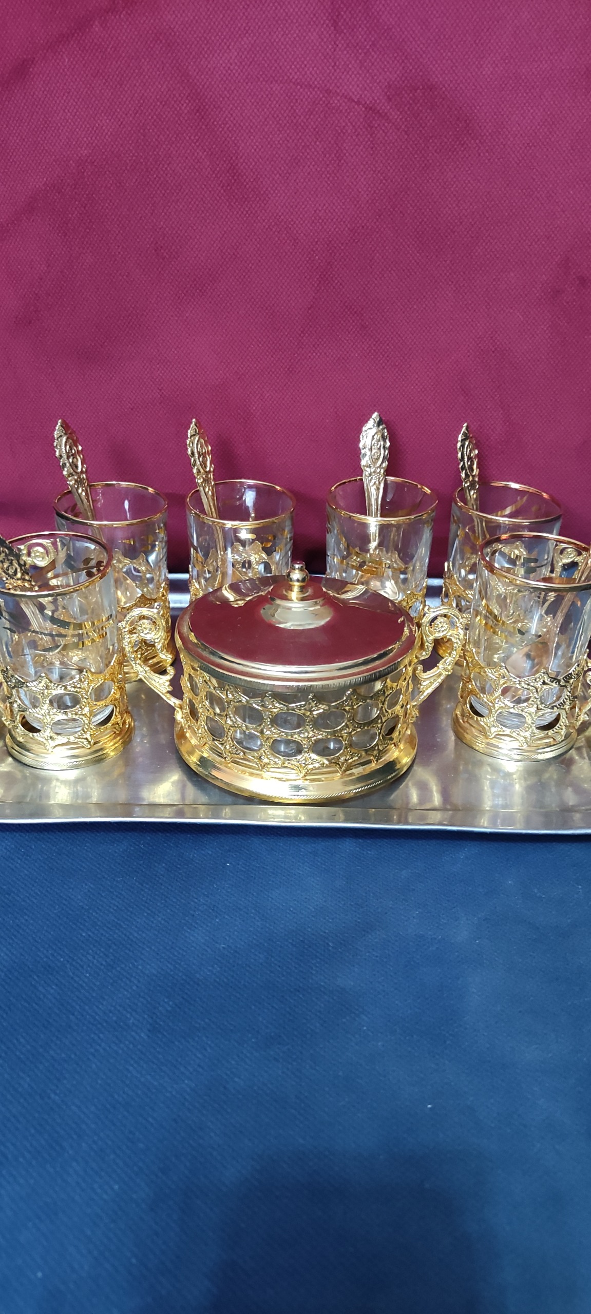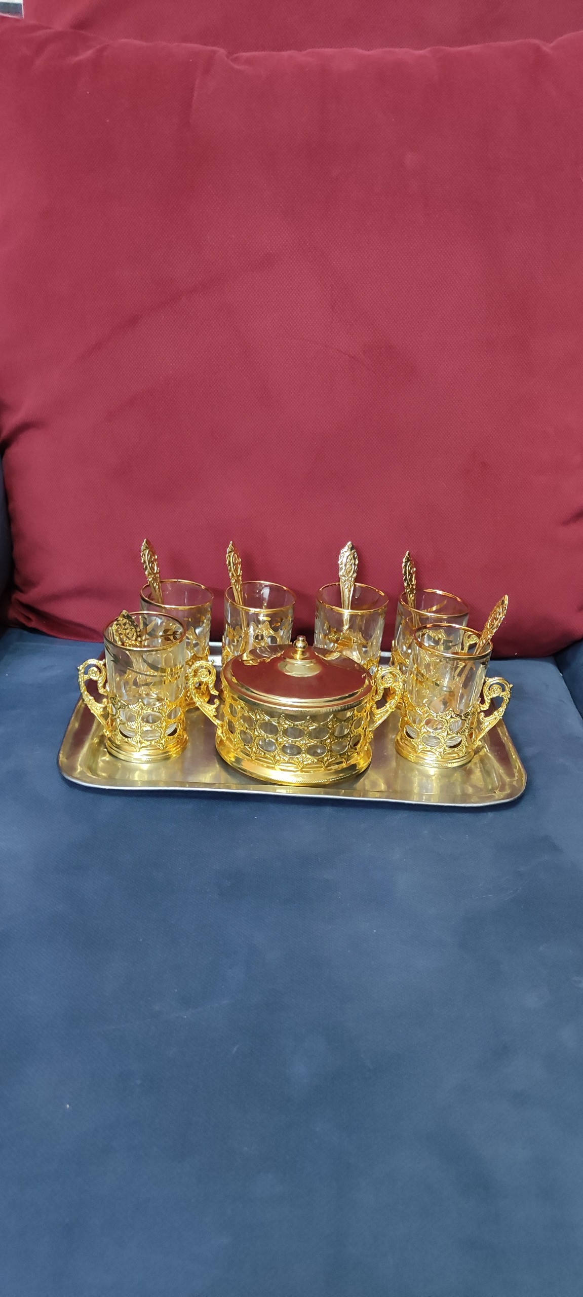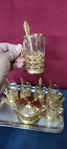 سرویس چایخوری با انگاره طلایی بسیار زیبا، آنتیک و کلکسیونی