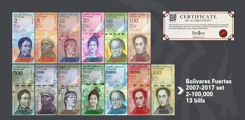 ست 12 بانکی 2 تا 100000 بولیوار ونزوئلا 2007-2017