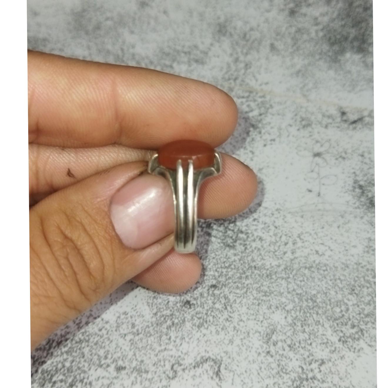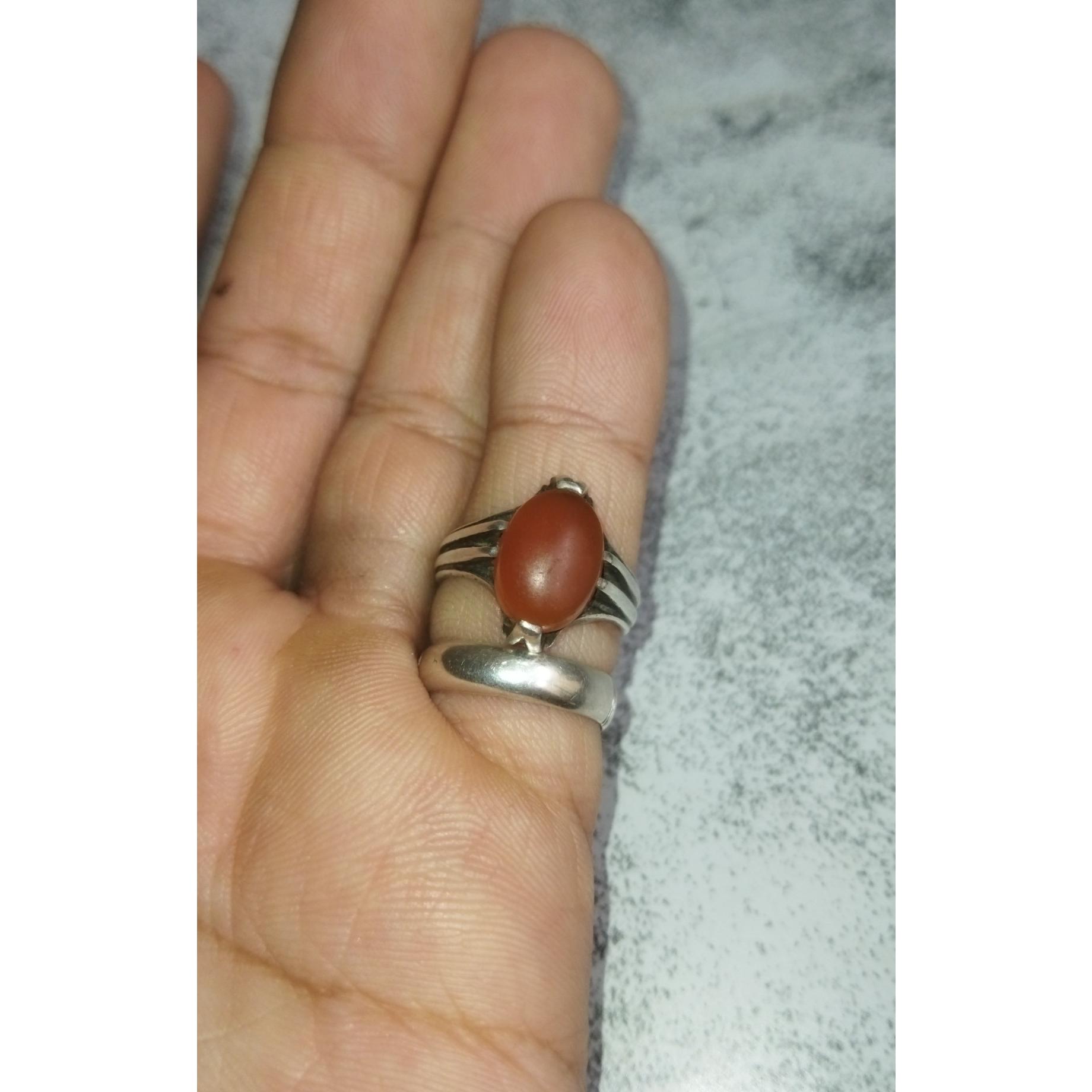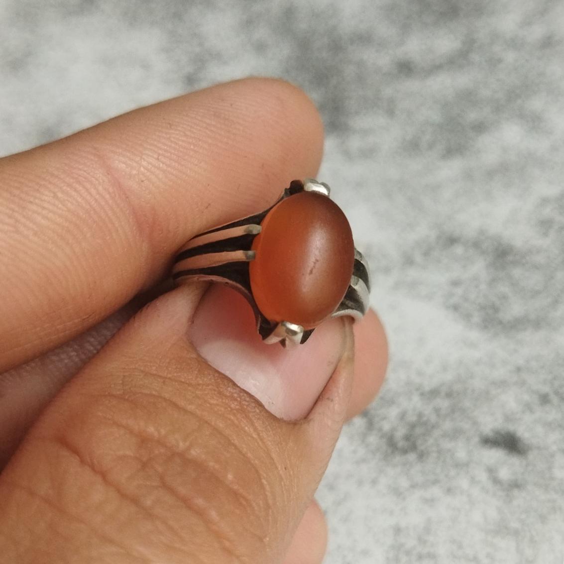 عقیق یمنی کهنه (مشکوک به تراش احتمال به قطعی روی سنگ)کناره های سنگ هم خوردگی های خیلی ریز دارد.سنگ طبع خیلی عالی دارد و برای دست کردن و نگه داشتن خیلی مناسب می باشد.