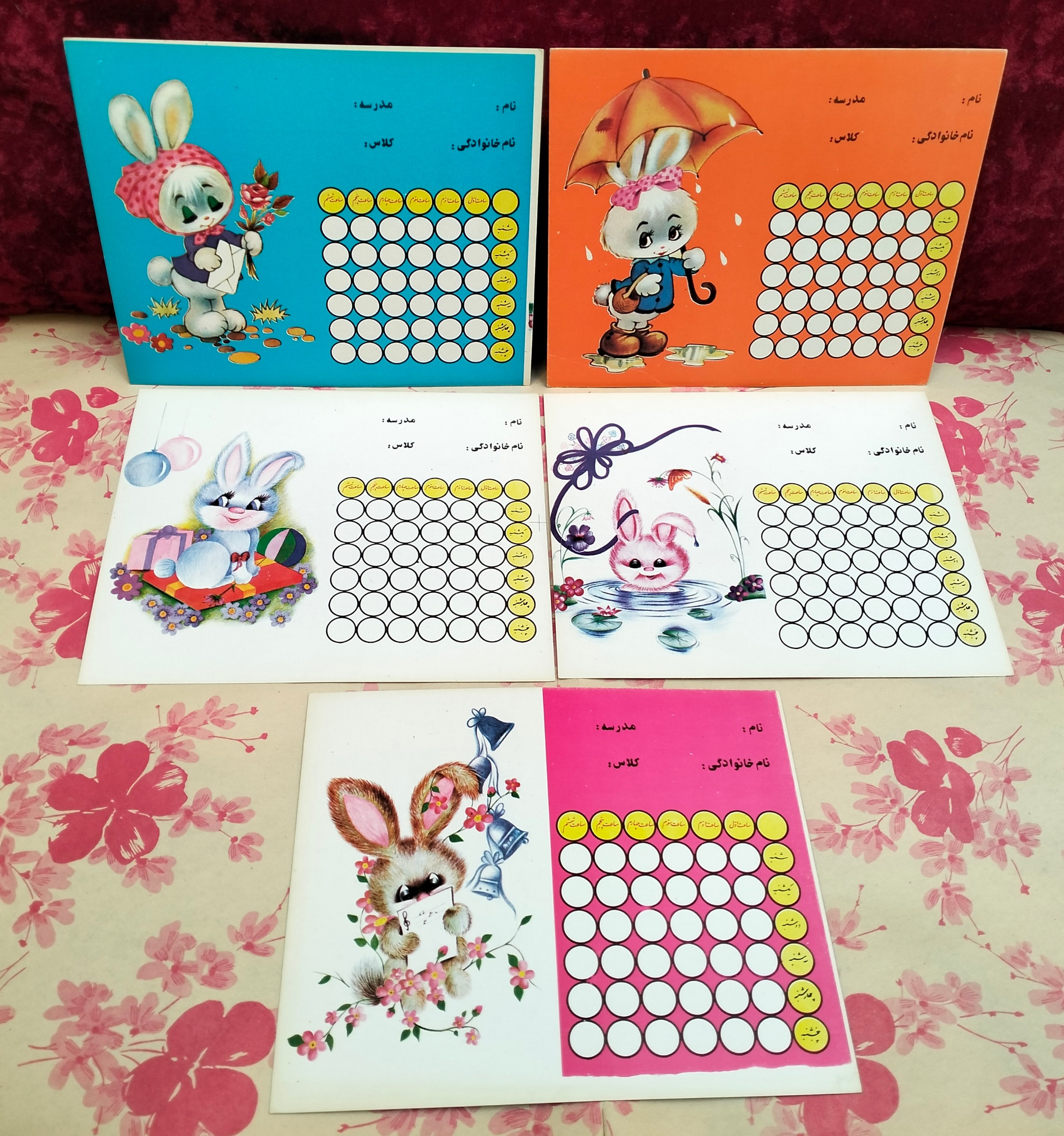5 مدل برنامه هفتگی عروسکی مقوایی ، اصل و کلکسیونی ، آکبند قدیمی ، چاپ دهه 60 ، سایز بزرگ ، ته انباری ، مطابق عکسها