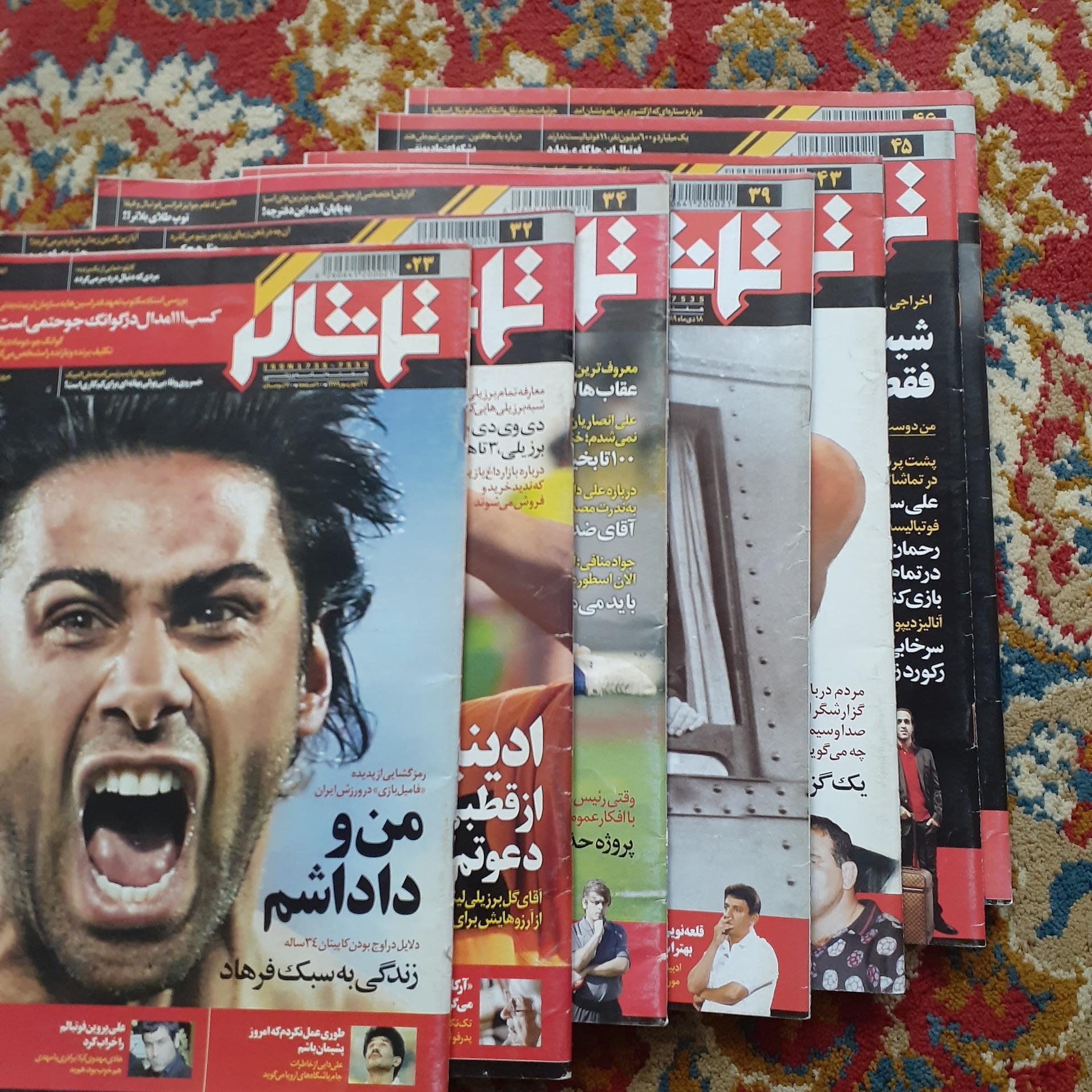 7 جلد مجله تماشاگر کمساب مربوط به سال 89 تمام رنگی با کاغذ براق تمیز و سالم قابل استفاده برای علاقمندان ورزش خصوصا فوتبالیستها و همچنین مناسب کلکسیونر (14 سال پیش(،
