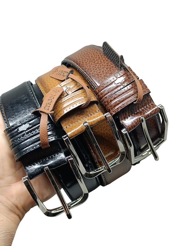 بسته 3 عددی شامل سه کمربند مردانه با سه رنگ مشخص در عکس