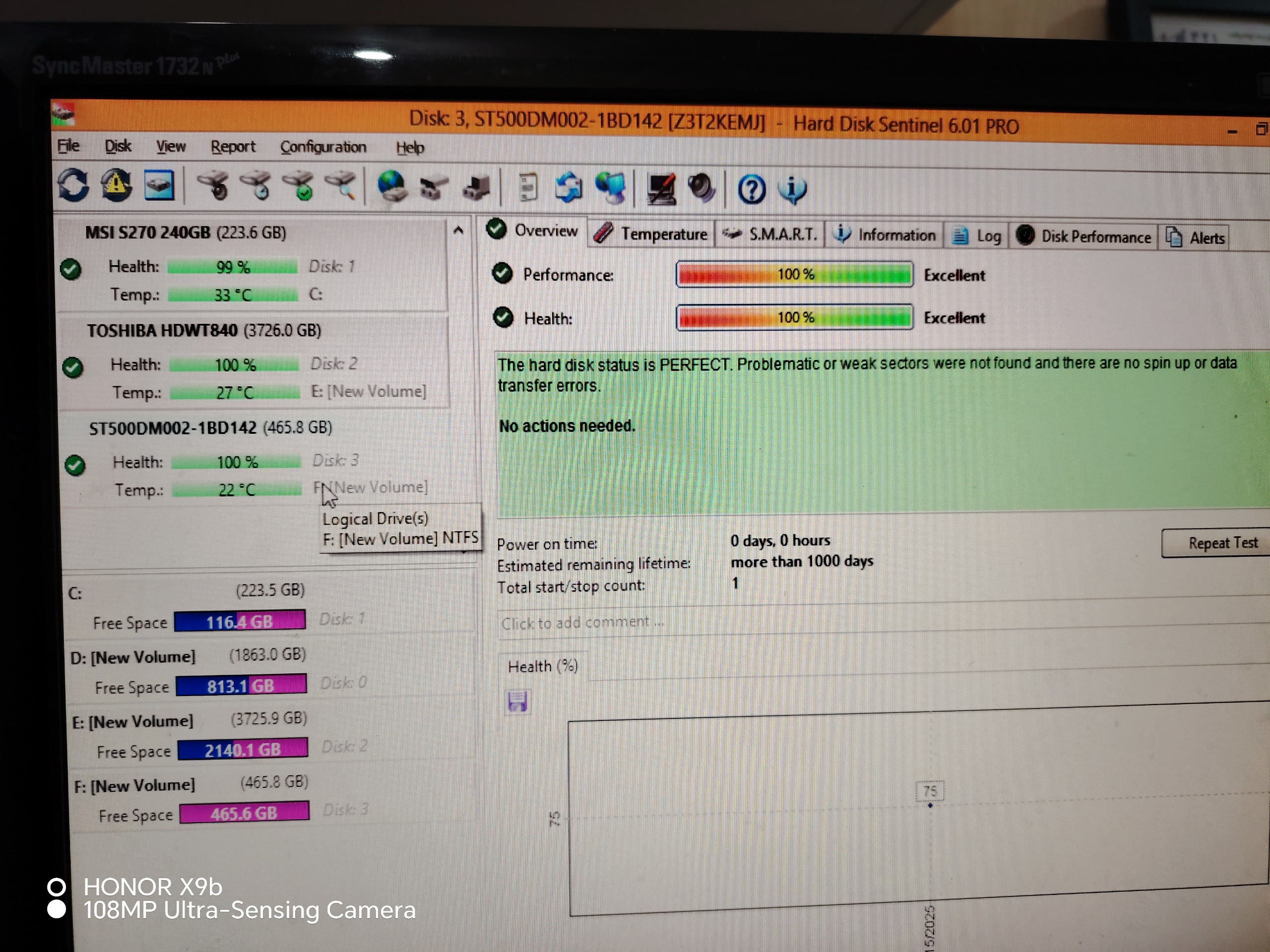 تصاویر تست سلامت هارد با دو نرم افزار مختلف گذاشته شده