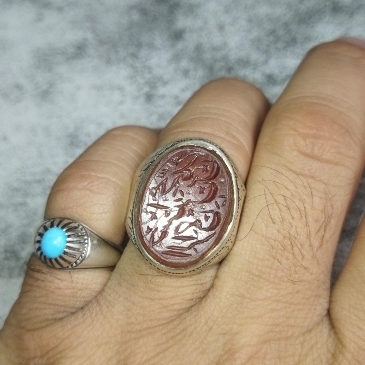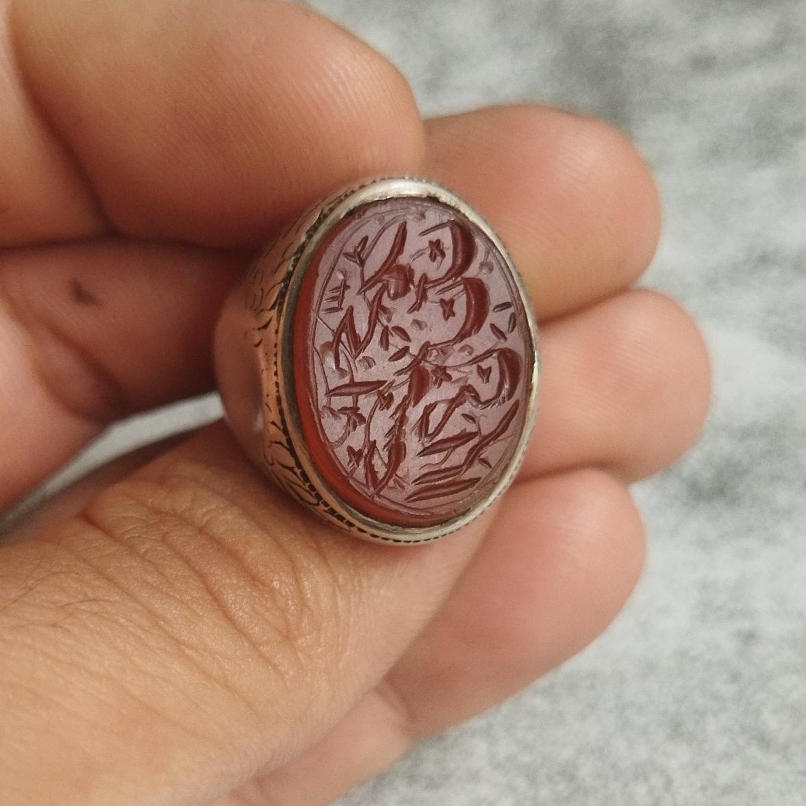 مهر عقیق کهنه.خط چپ.یمنی.تراشدار
